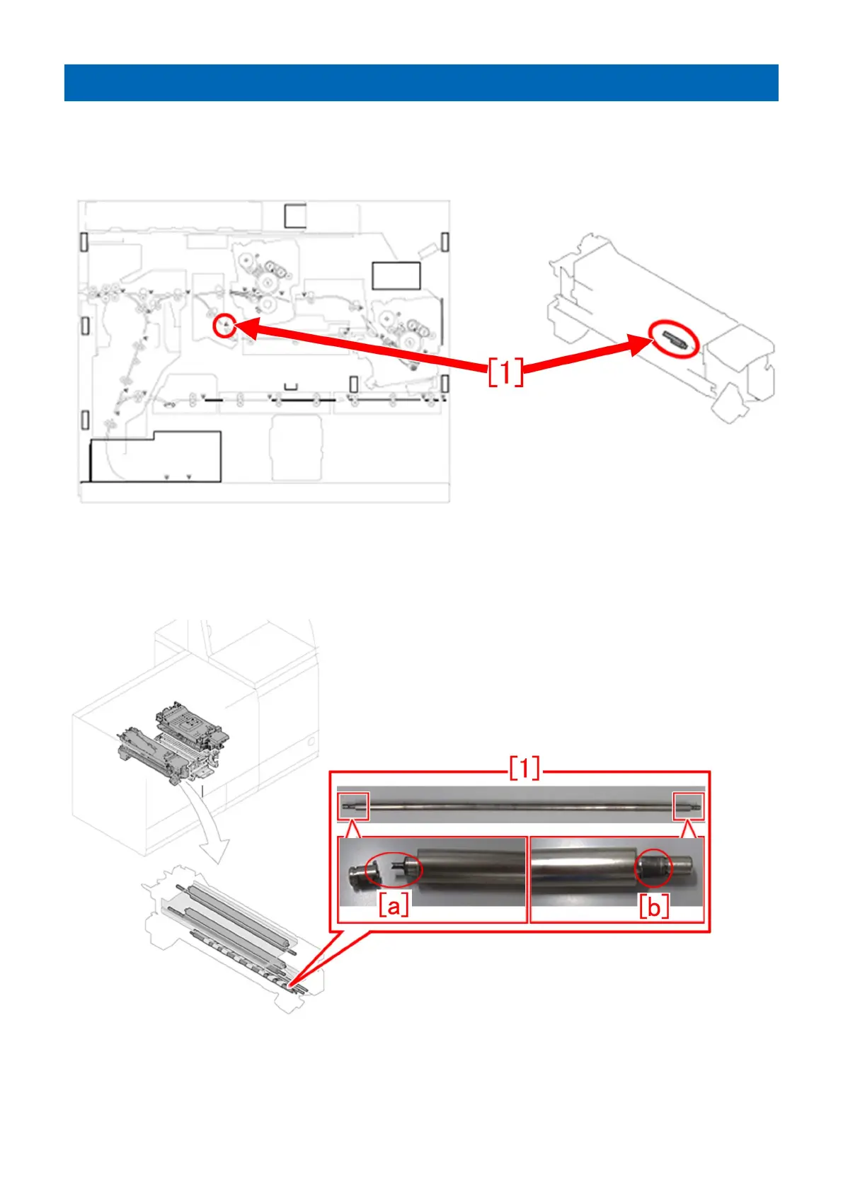 [a] shows that the shaft of the decurler drive roller is broken, and [b] shows that the shaft is shaved.