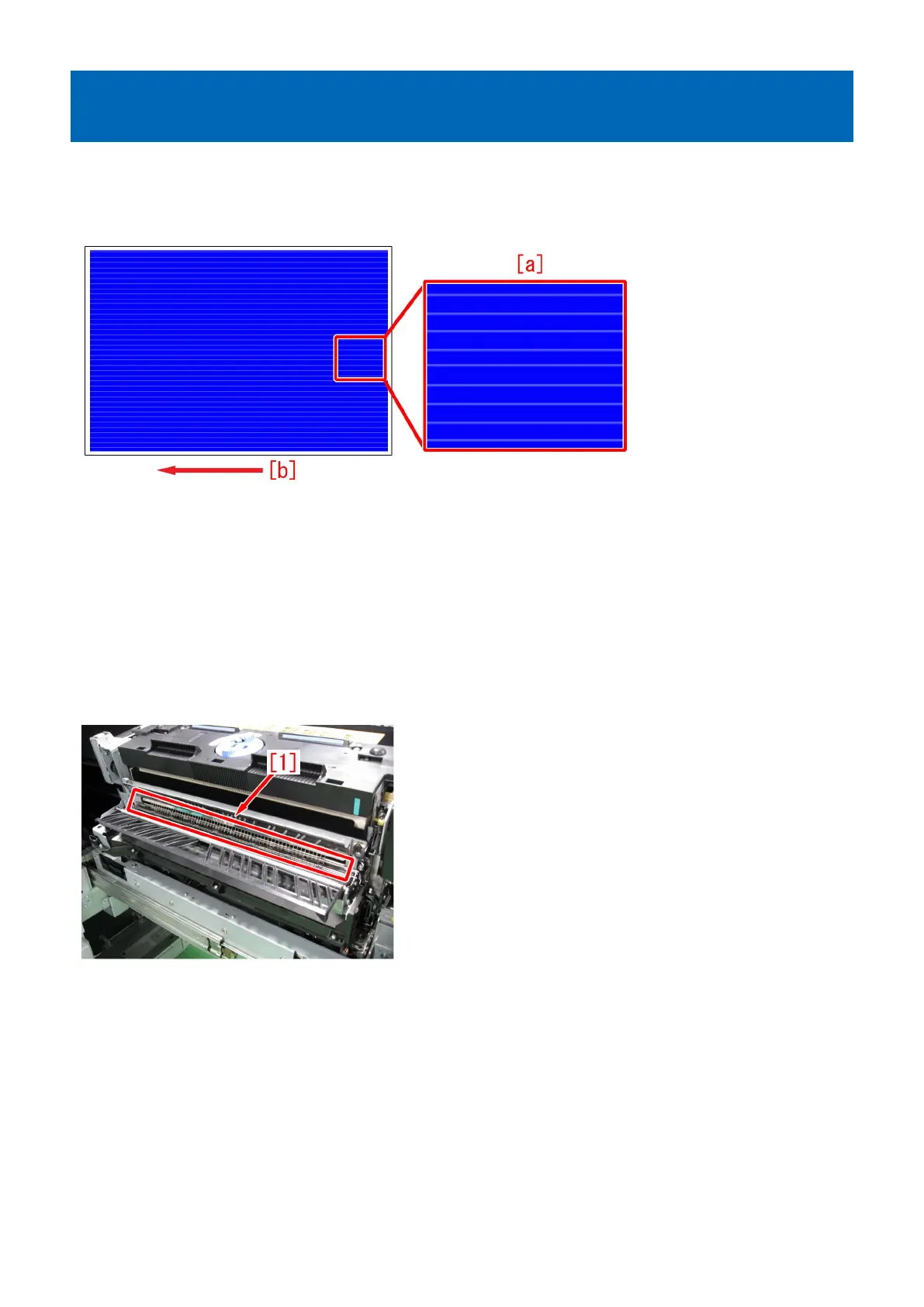 Several 1 mm-wide glossy lines [a] may occur at intervals of 5 mm in the high-density area on the first side of duplex printing.