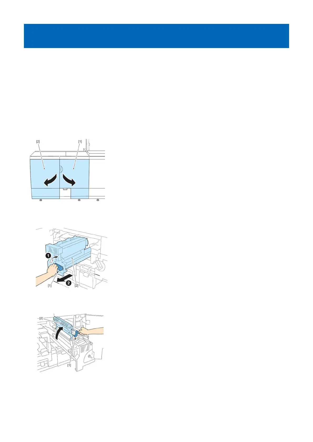 1) Open the Sub Station Front Right Cover[1]and the Sub Station Front Left Cover[2].