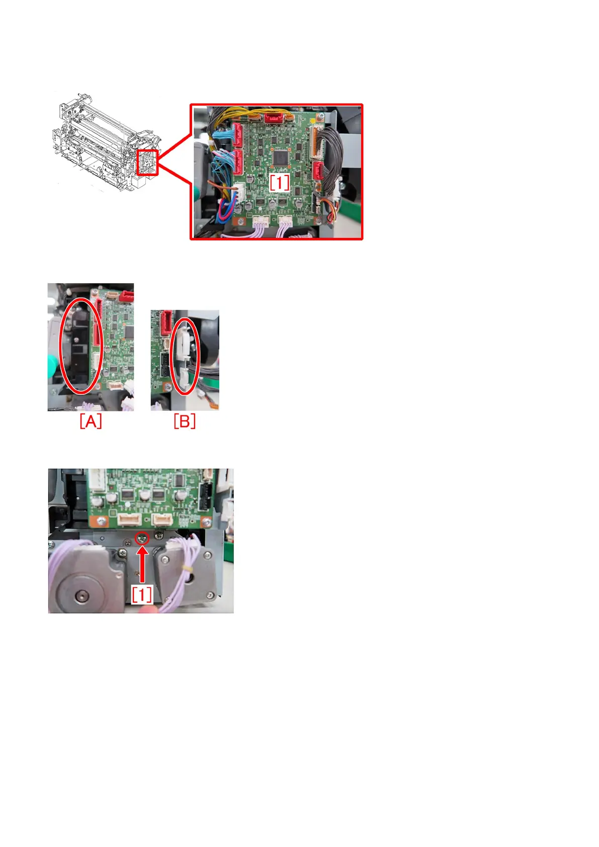 4) Remove all of the 13 connectors that are connected to the fixing inner driver PCB assembly [1] located in front side of the fixing