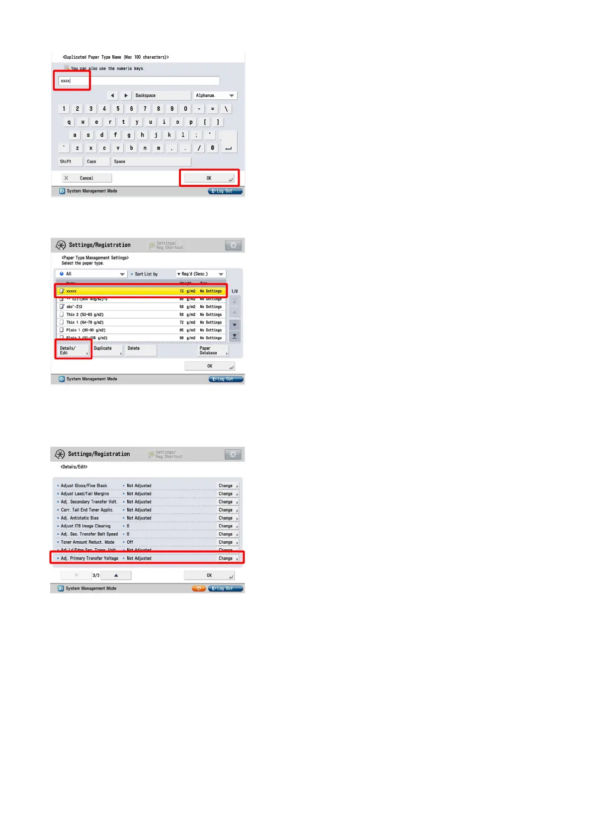 4) Select the paper type duplicated in the step 3) and press "Details/Edit".