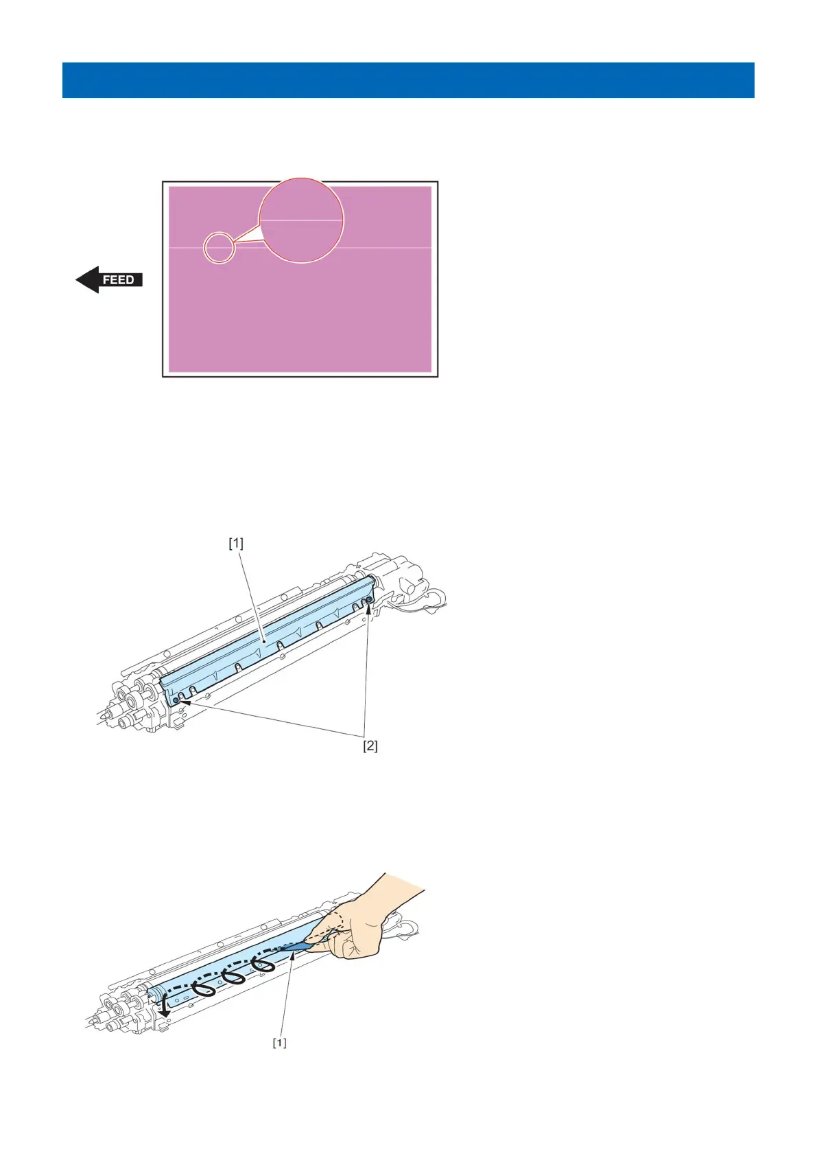 1. Remove the Developing Cylinder Upper Cover [1]. (2 Screws [2])