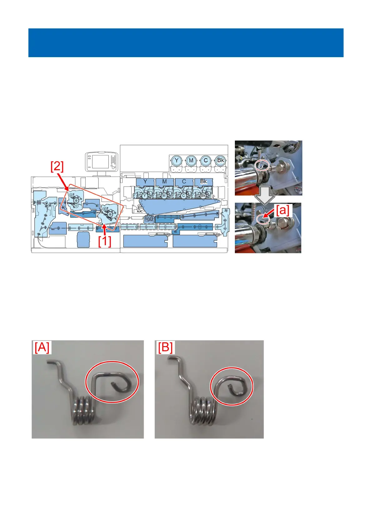 When the above-mentioned symptom occurs, prepare and replace the following parts. Replace the torsion spring both on the