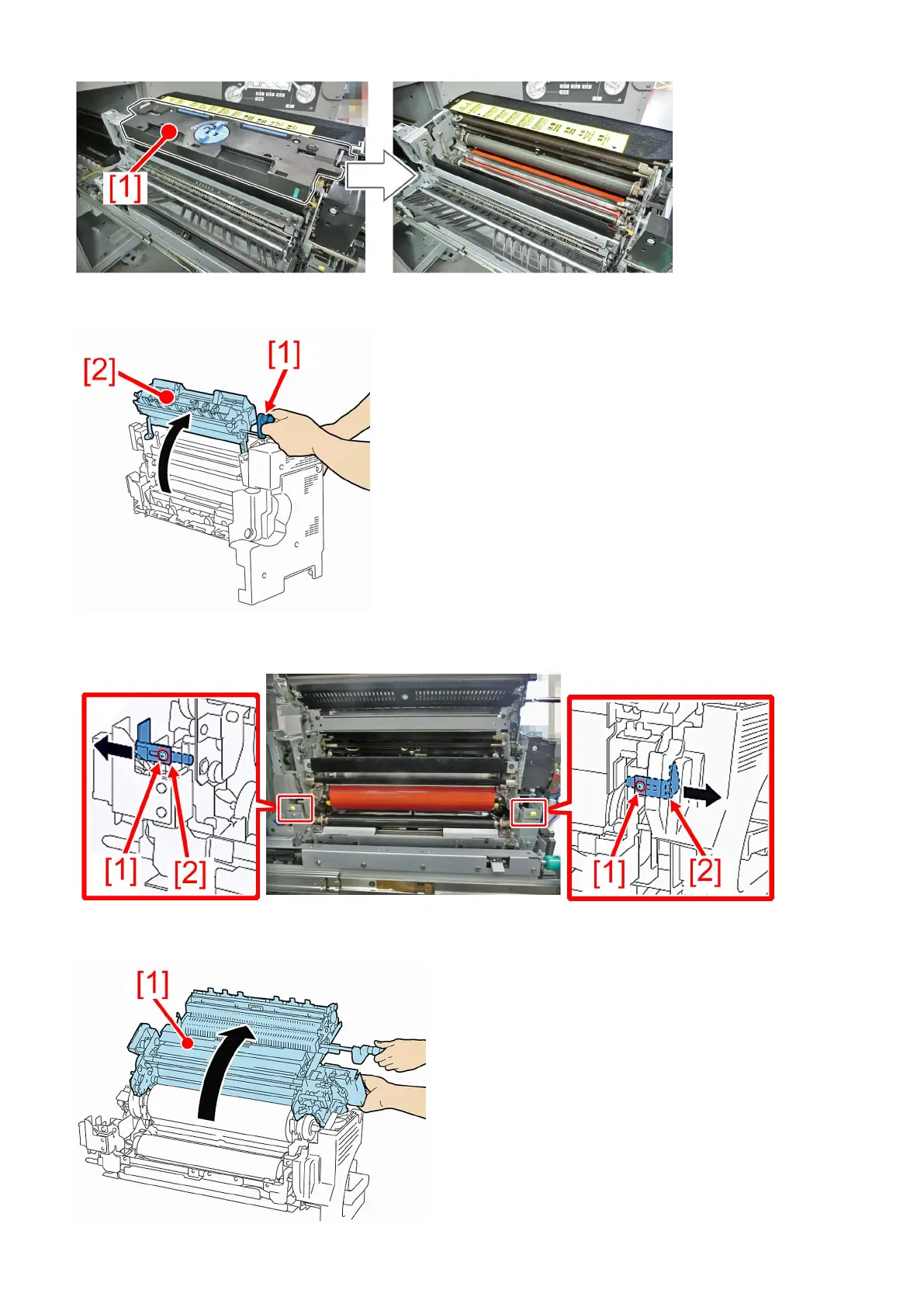 4) Open the upper unit [1] slowly.