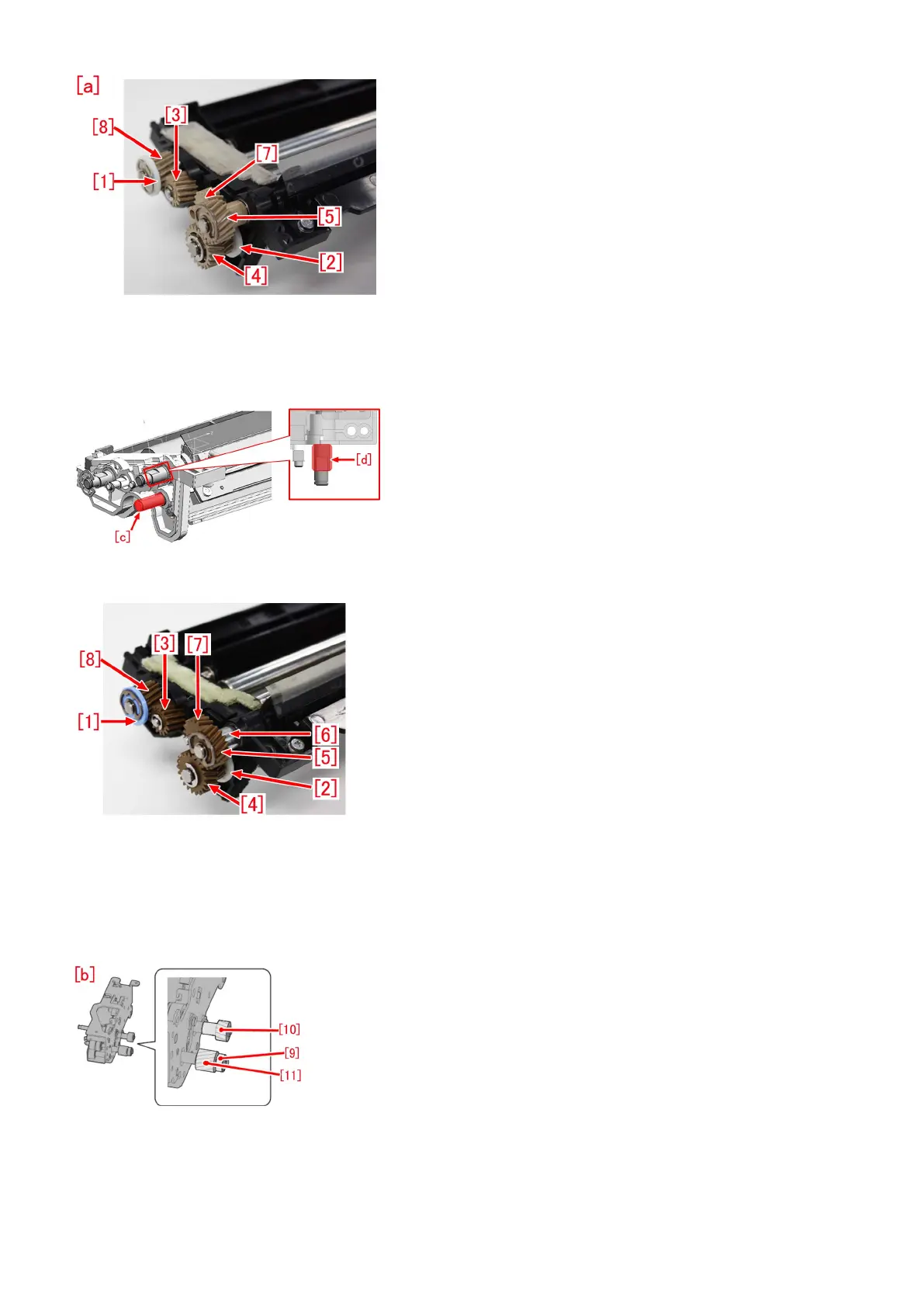 5) Remove [9] to [11] from the transfer cleaner drive unit [b], and replace with the parts of 2ND TRNSFR. CLEANER GEAR SET.