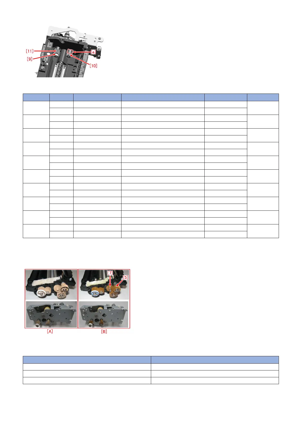 In order to increase strength, the materials of gears and positioning rollers are changed. [A] is the old type and [B] is the new type