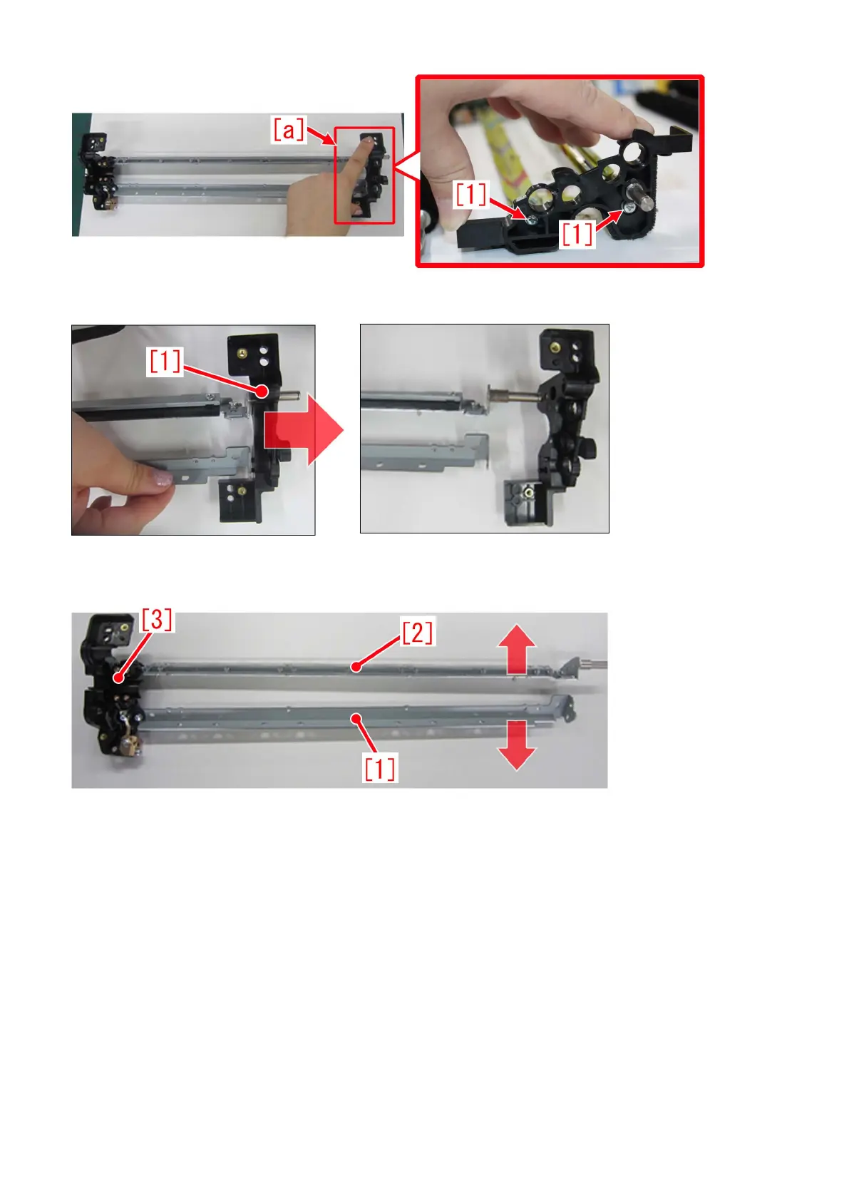 [Caution] At step 9), be careful not to expand the space between the upper blade support [1] and lower blade support [2] in the