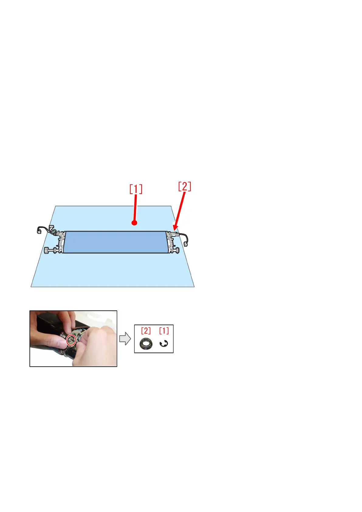 [Note] Be careful not to touch the surface of the fixing pressure belt, and place the 1st fixing pressure belt assembly [2] on paper