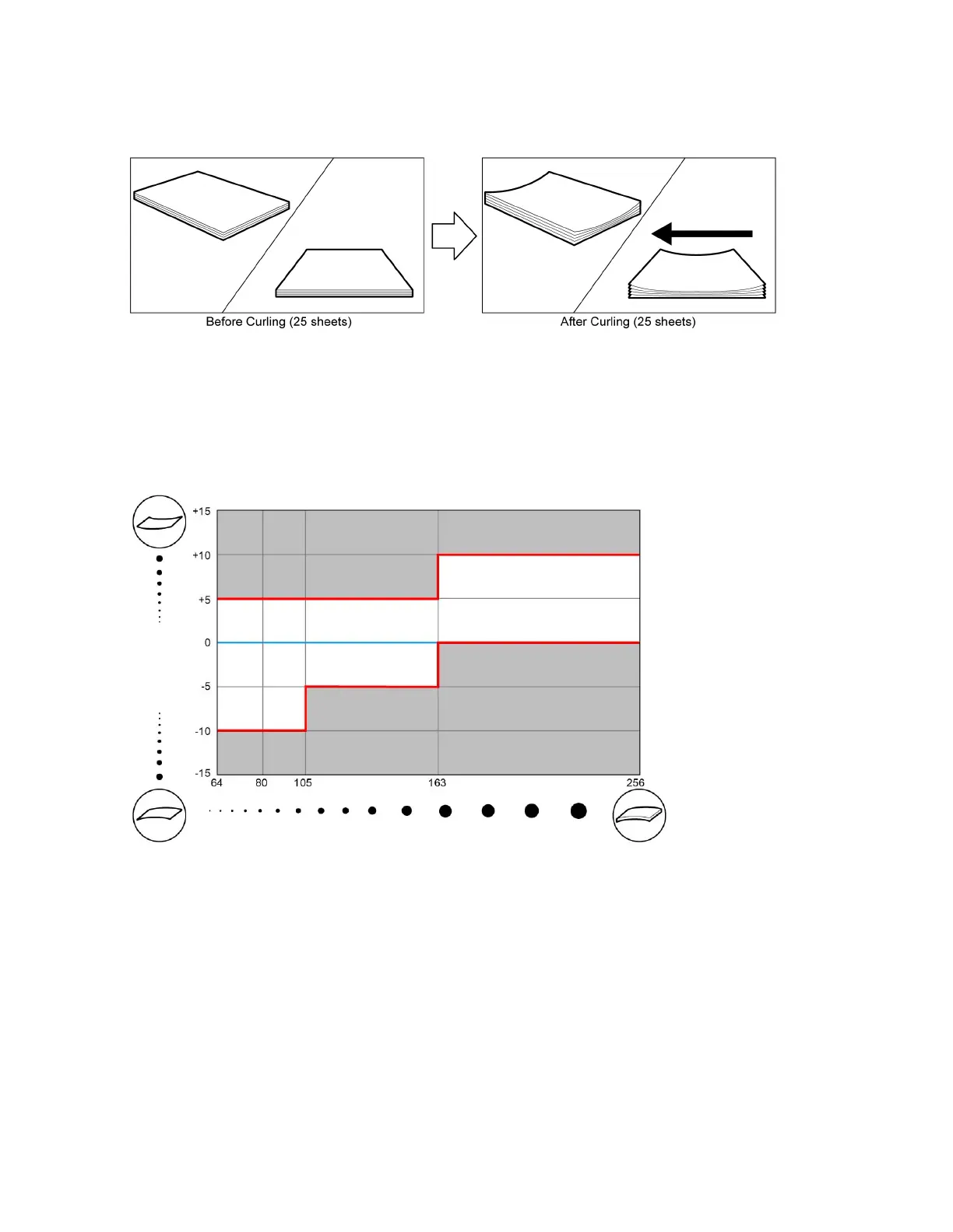 For an up curl, the thicker the paper the more amount of curl is acceptable.