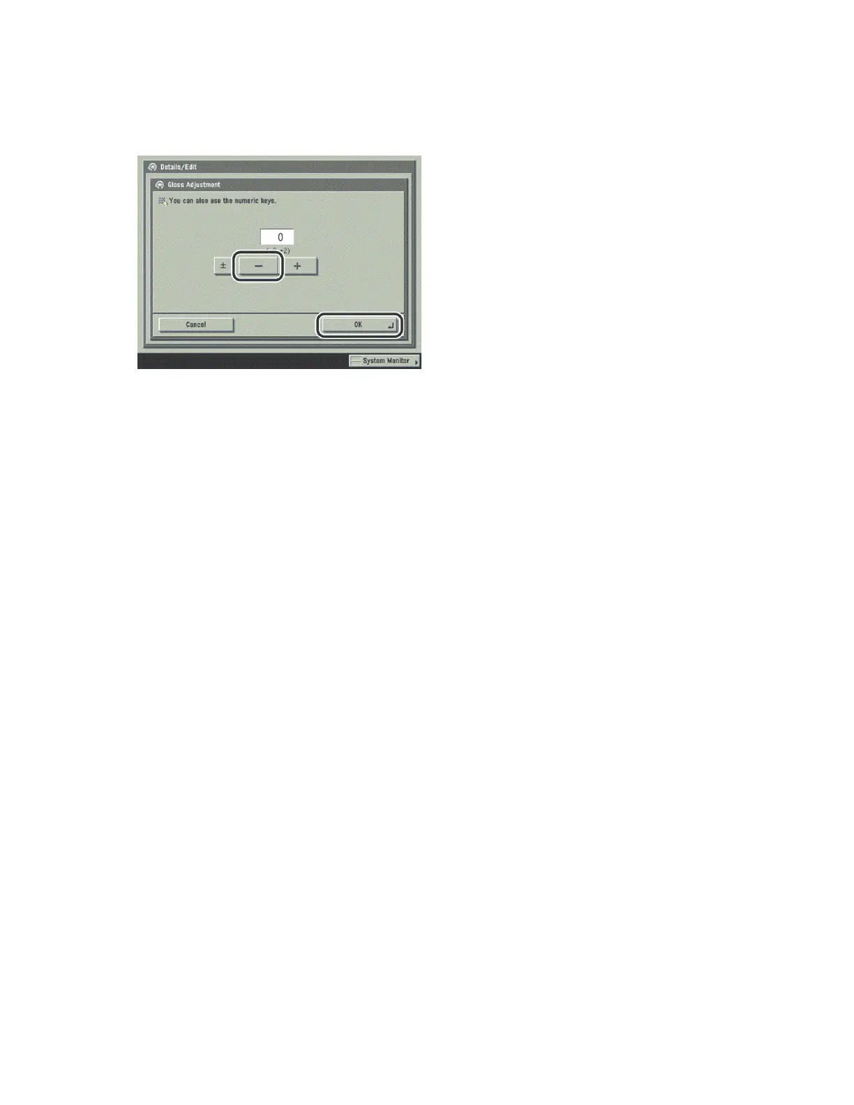 4 Press [-] to adjust the gloss → press [OK].