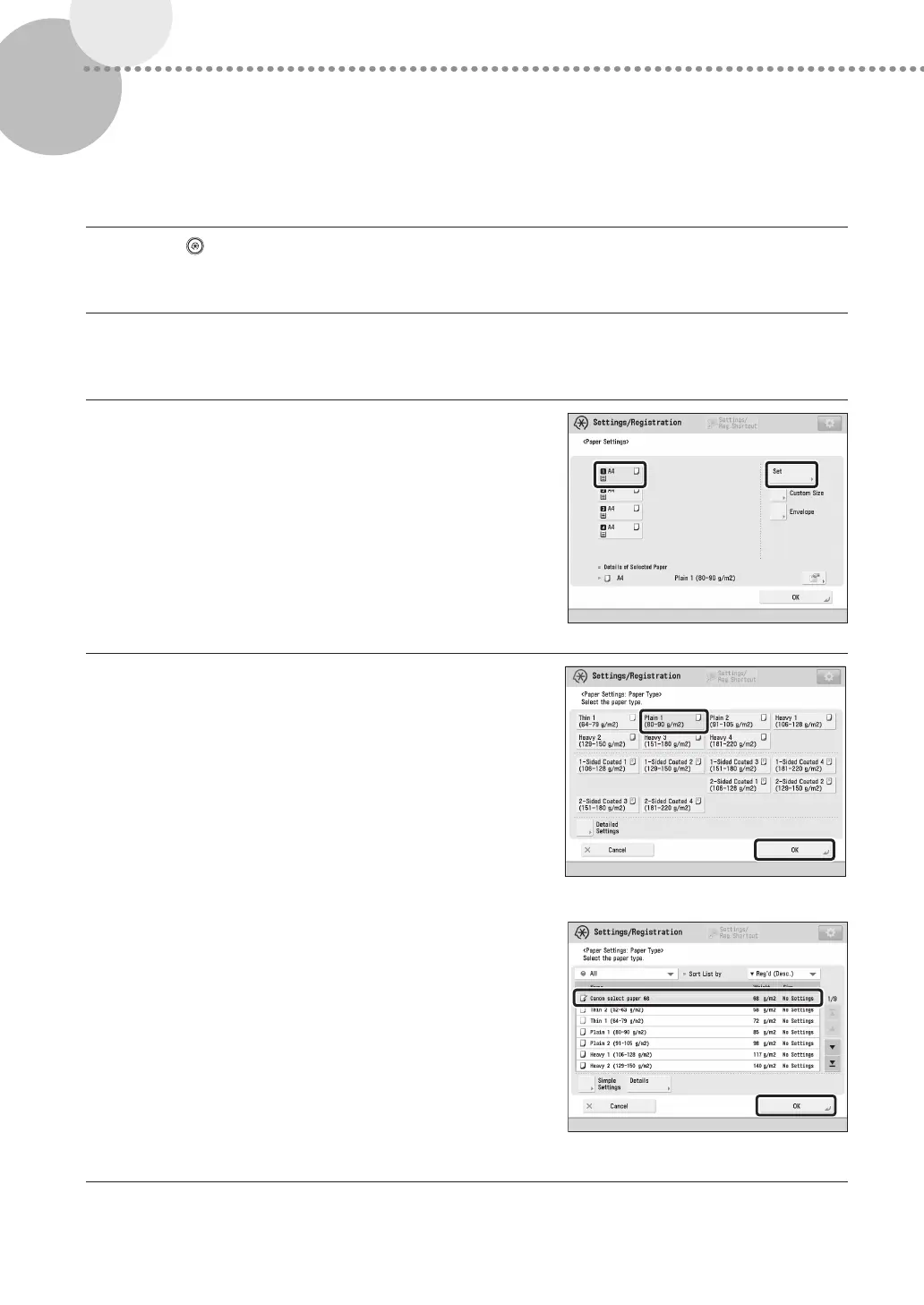 Press [Preferences] [Paper Settings] [Paper Settings].