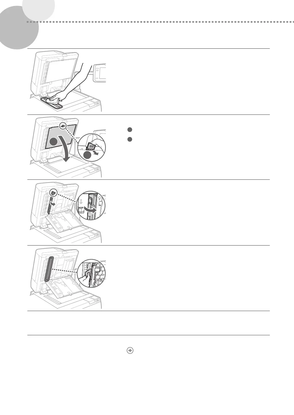 Open the feeder and clean the original scanning area (thin glass