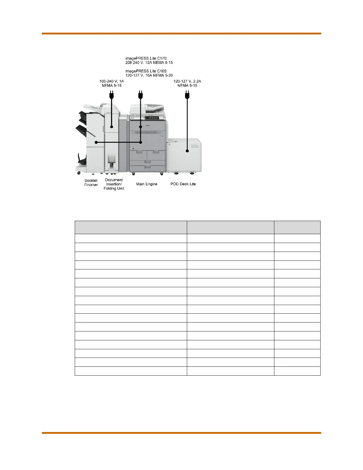 Figure 3 – Power and Plug Requirements (Finisher-AC1 Configuration)