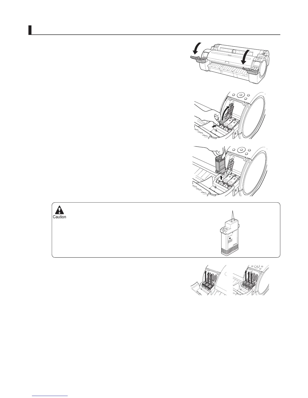 Holding the ink tanks by the grips, remove them.