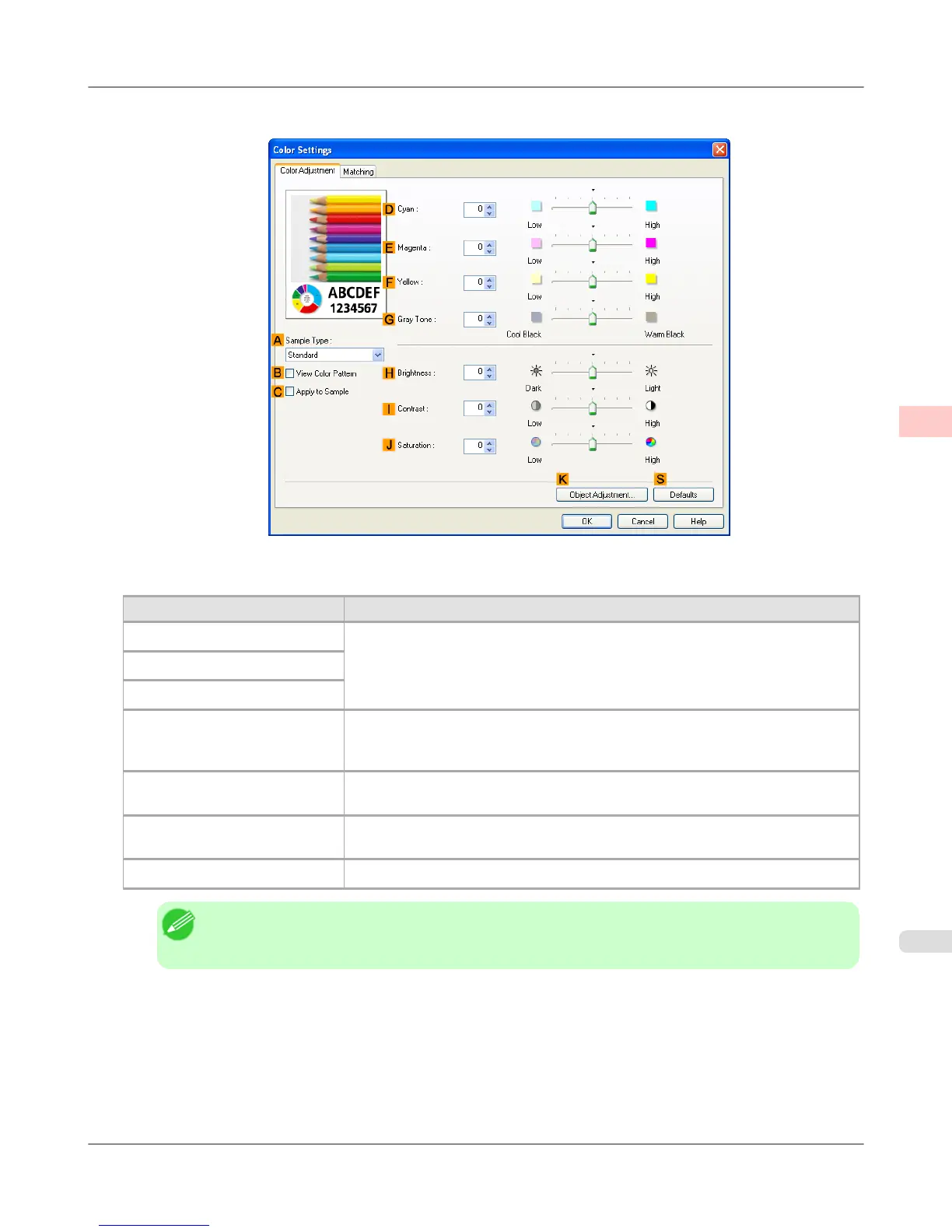 8. On the Color Adjustment sheet, adjust the color tones, brightness, and so on as desired.
