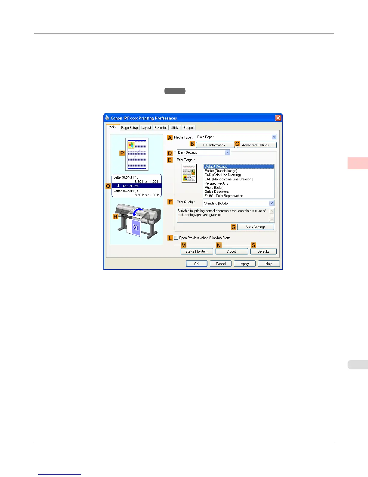 6. After confirming that D Easy Settings is selected, select from the E Print Target list.