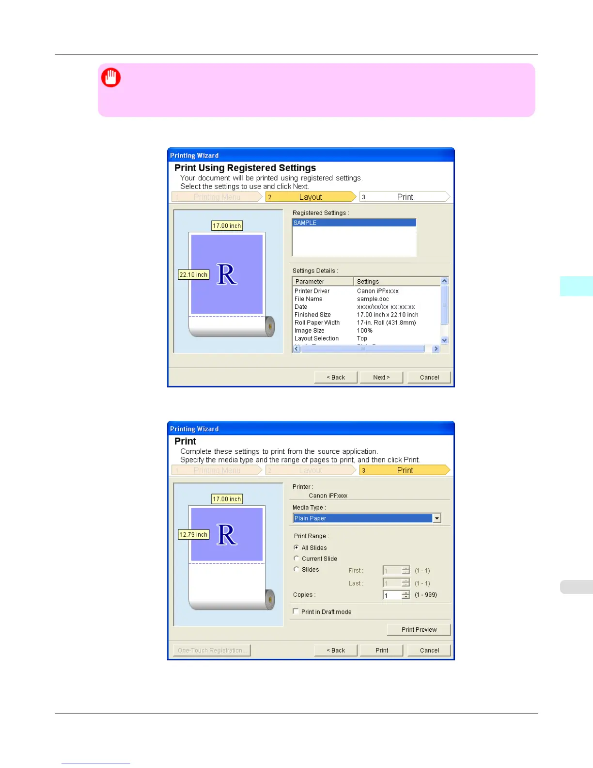iPF815 Print Using Registered Settings (PowerPoint)