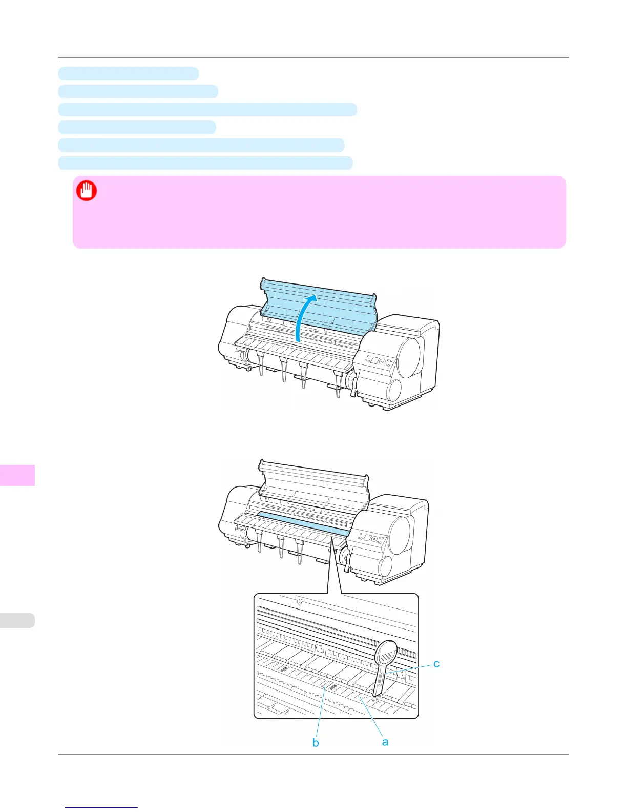 paper dust has accumulated in the Vacuum holes (a) on the Platen or in the Borderless Printing Ink Grooves (b),