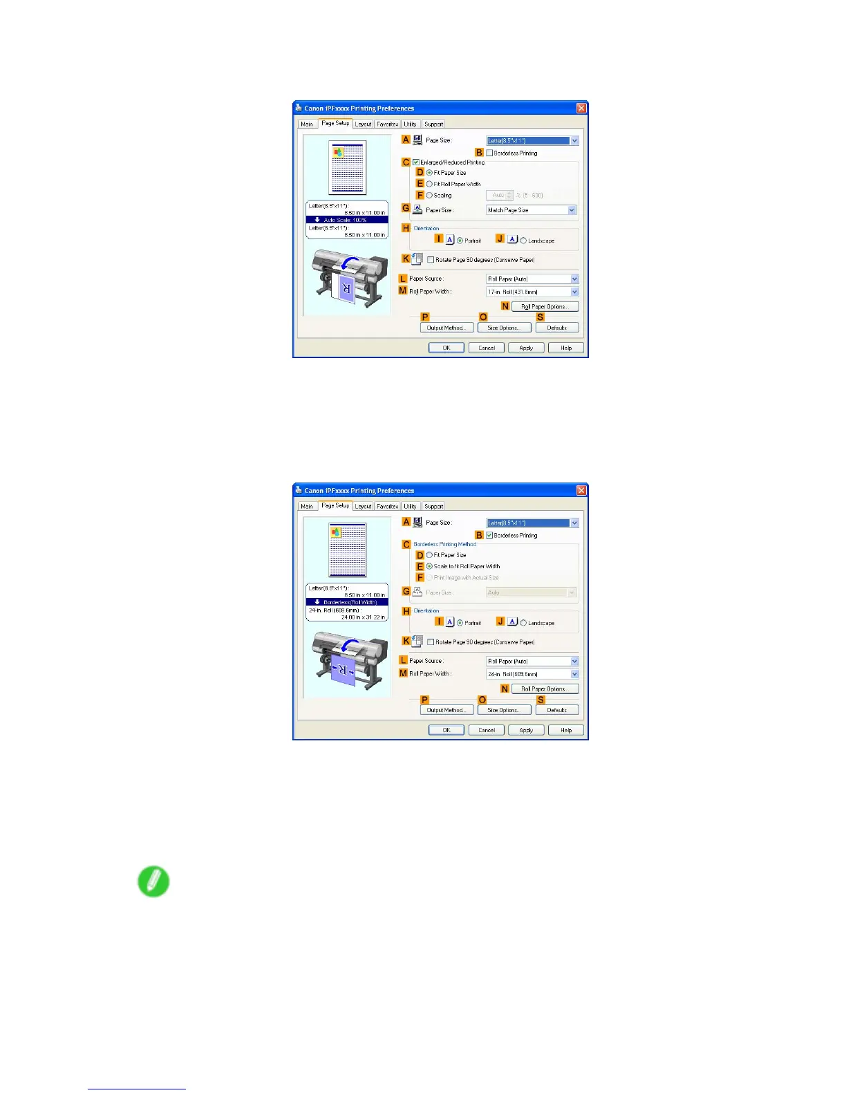 13. In C Borderless Printing Method , make sure E Scale to t Roll Paper W idth is selected.
