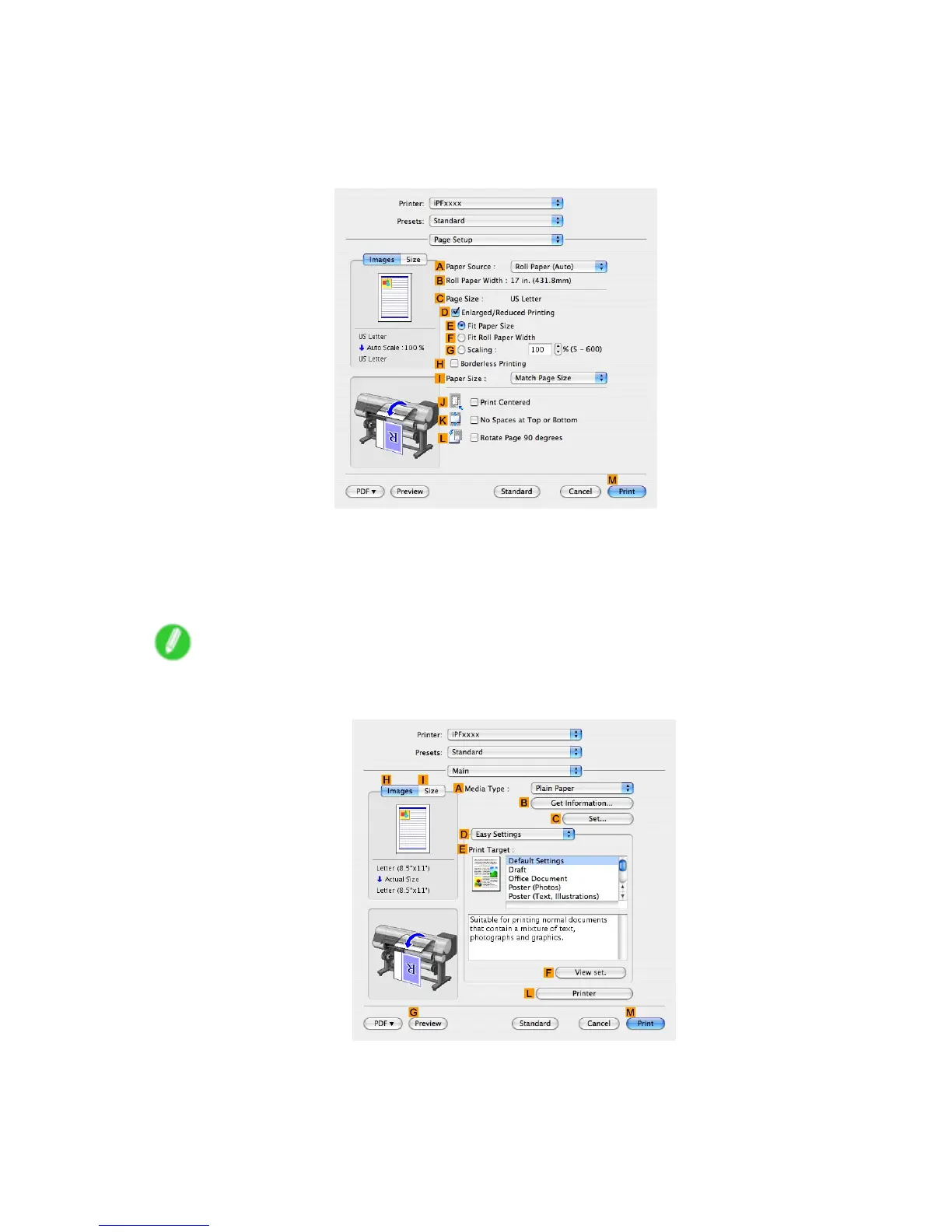• If the width of the roll loaded in the printer is not shown in B Roll Paper W idth , click L Printer