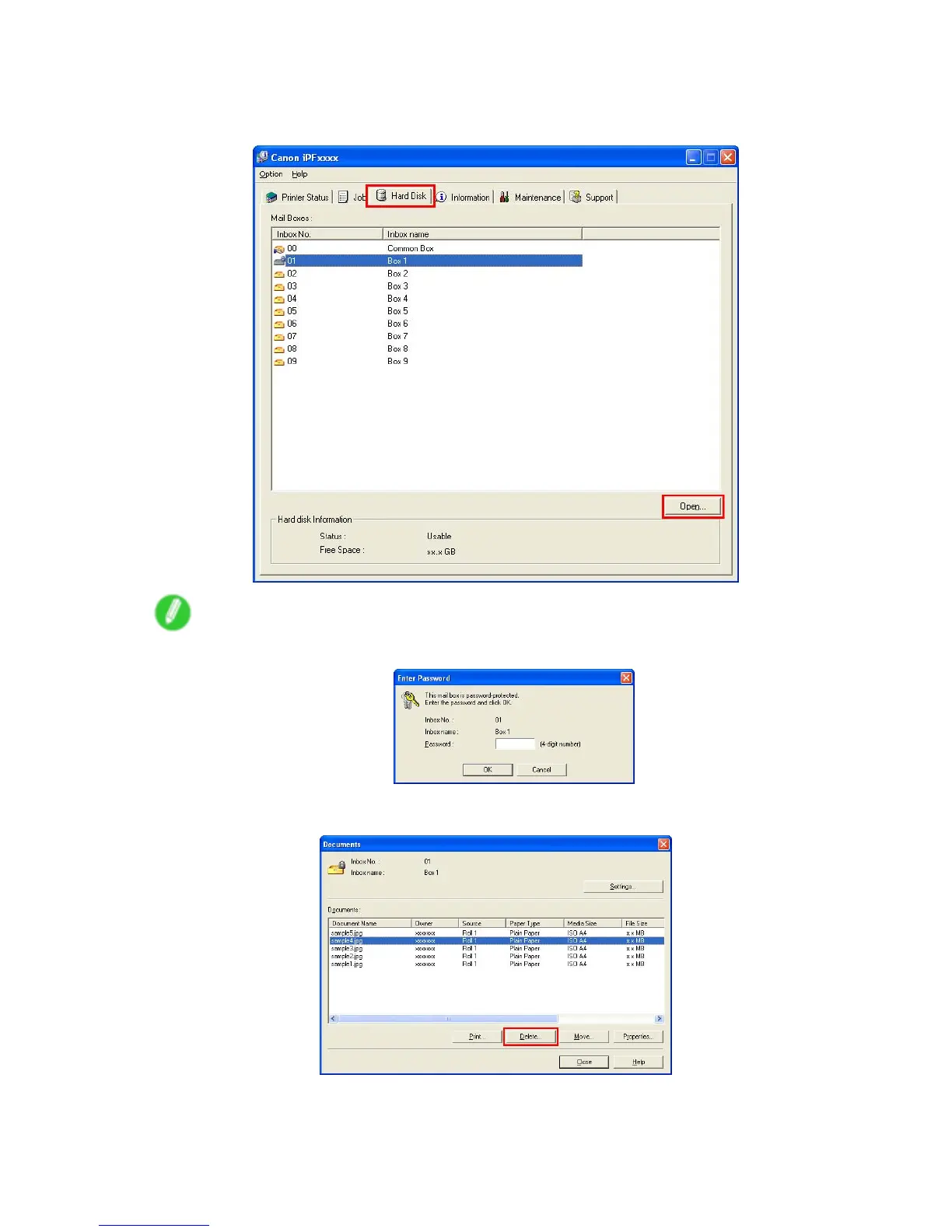 1. On the Hard Disk sheet, select a mail box in the list and click Open .