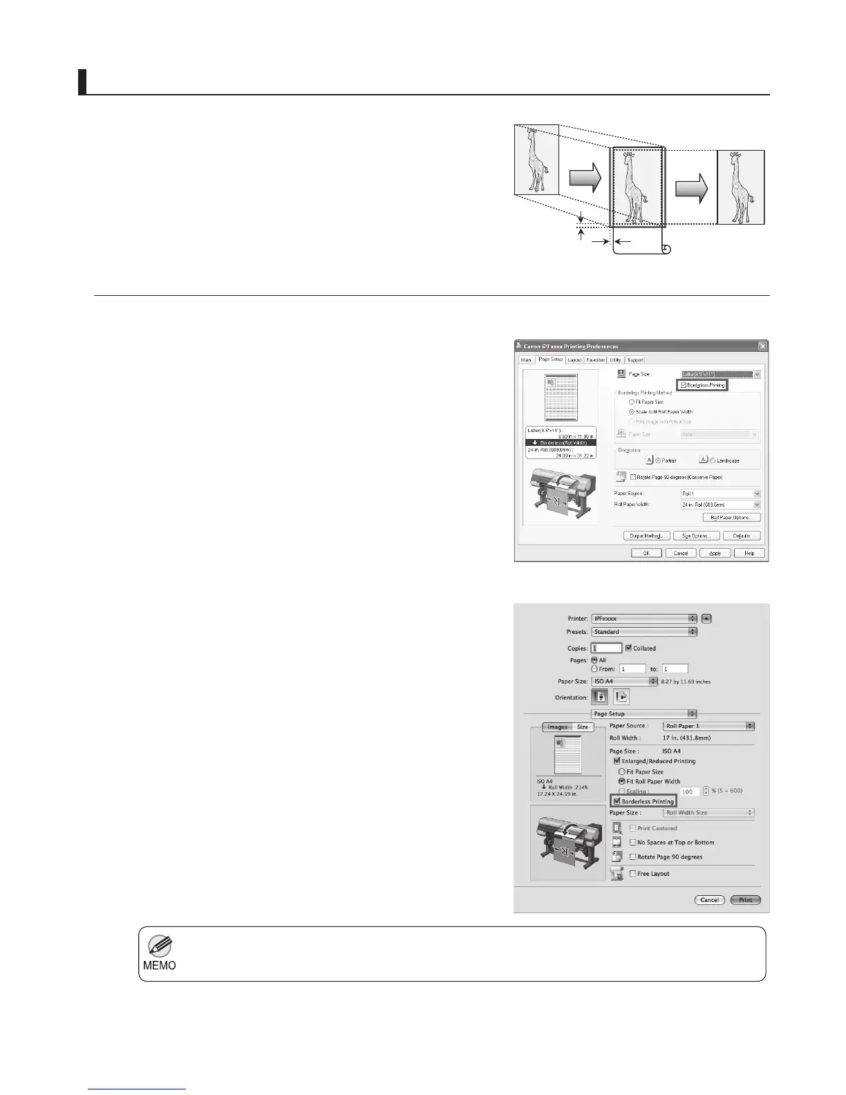 printer and you select XXXX-Borderless (where XXXX is the size of the original) in Paper Size in the