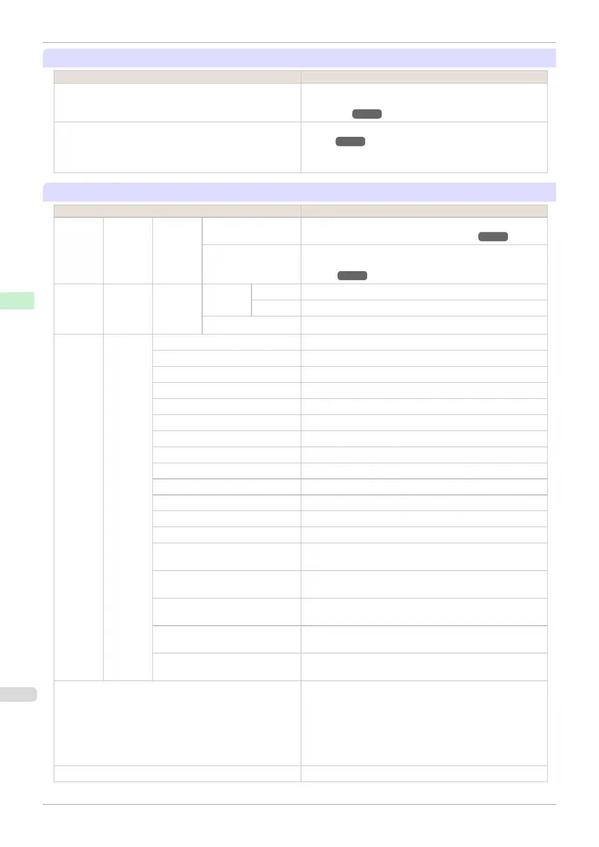 Print settings A counter for maintenance purposes. Indicates job print set-
