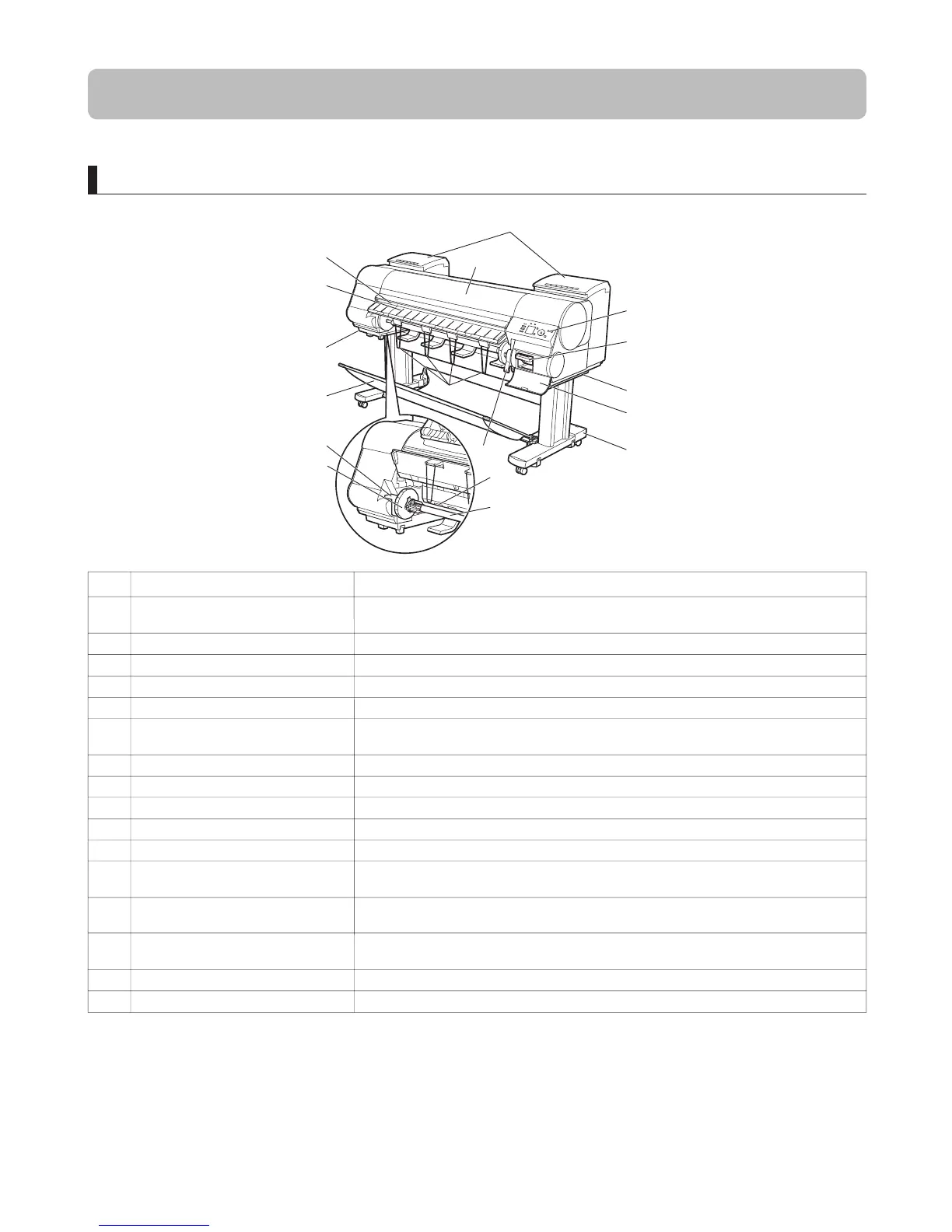 A stand that holds the printer. Equipped with casters to facilitate moving it.