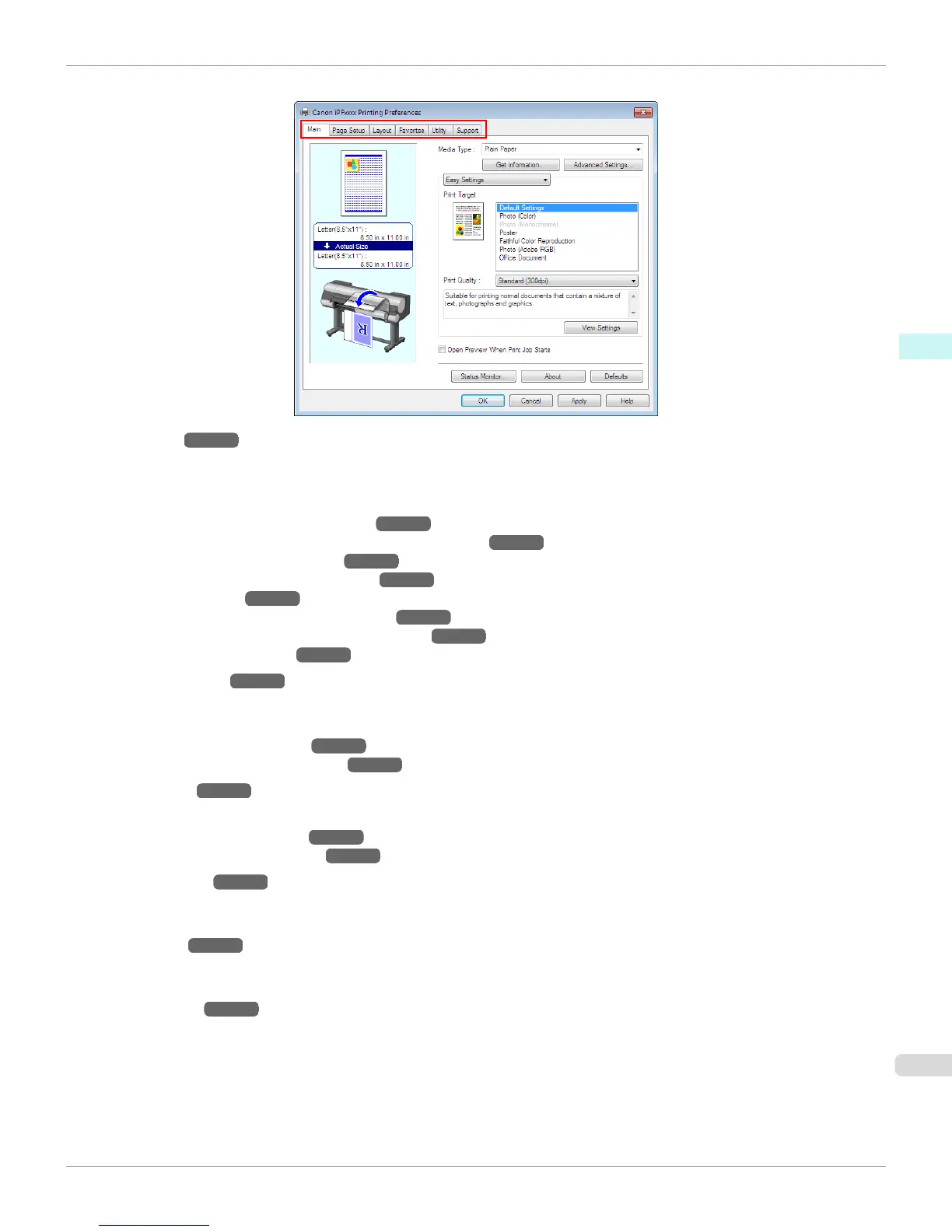 You can specify the type of paper, color processing, print quality, print preview, and other settings. Choose Easy