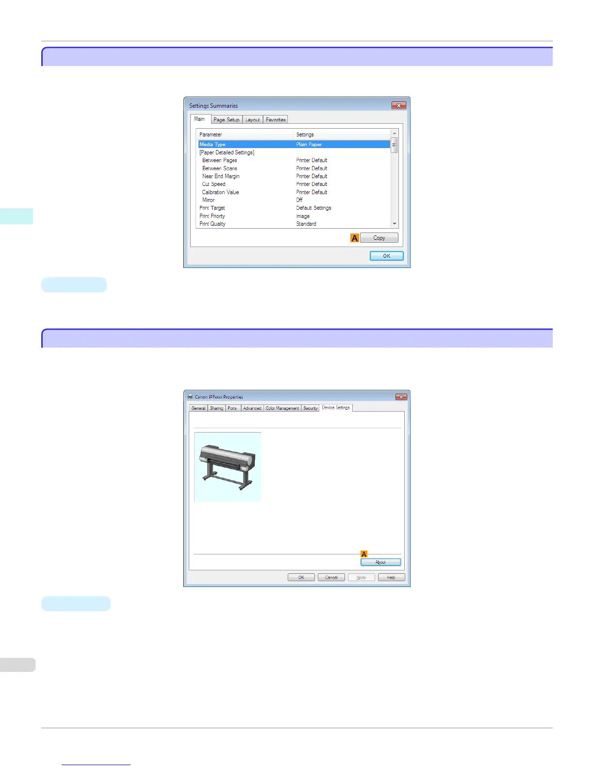 Many settings items on the printer properties sheets are controlled by Windows applications. However, the Device Set-