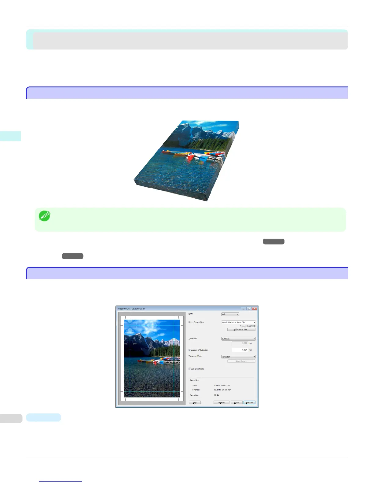 This window is for creating a layout image for finishing an image extended around the sides of the frame when printing