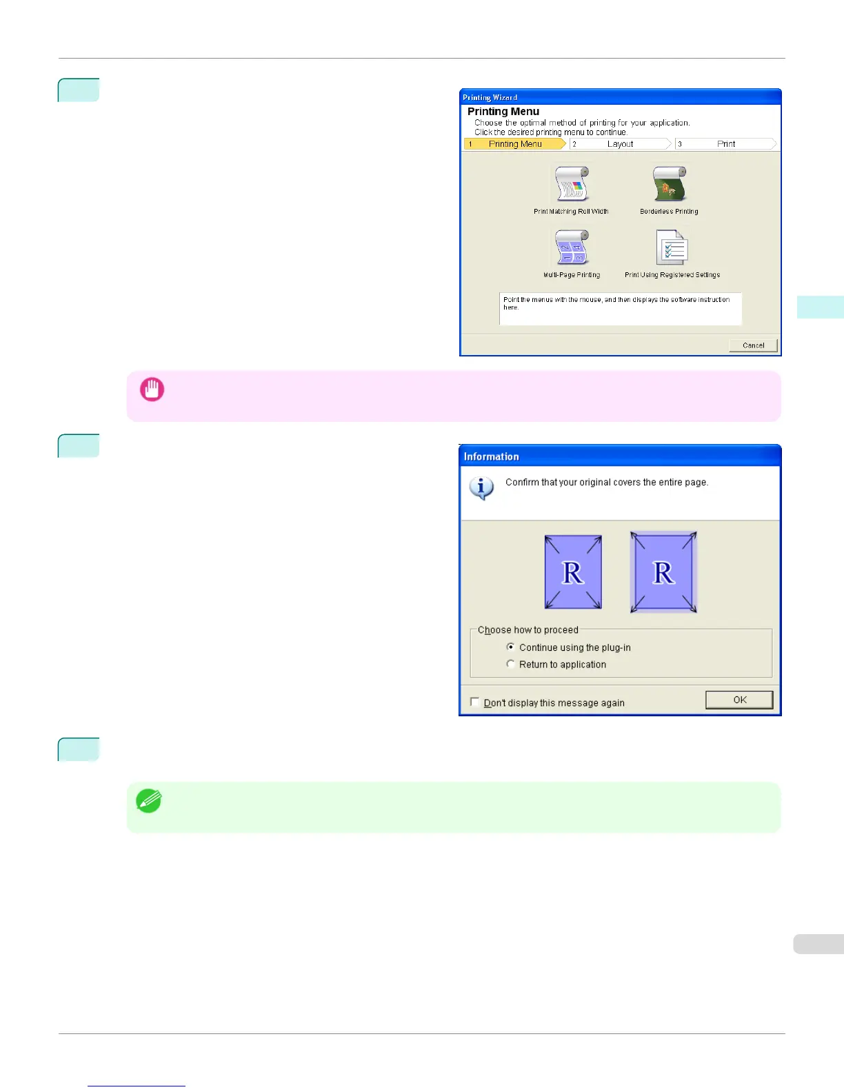 • If you want to change the display to another file or application while the Printing Wizard is open, close the Print-