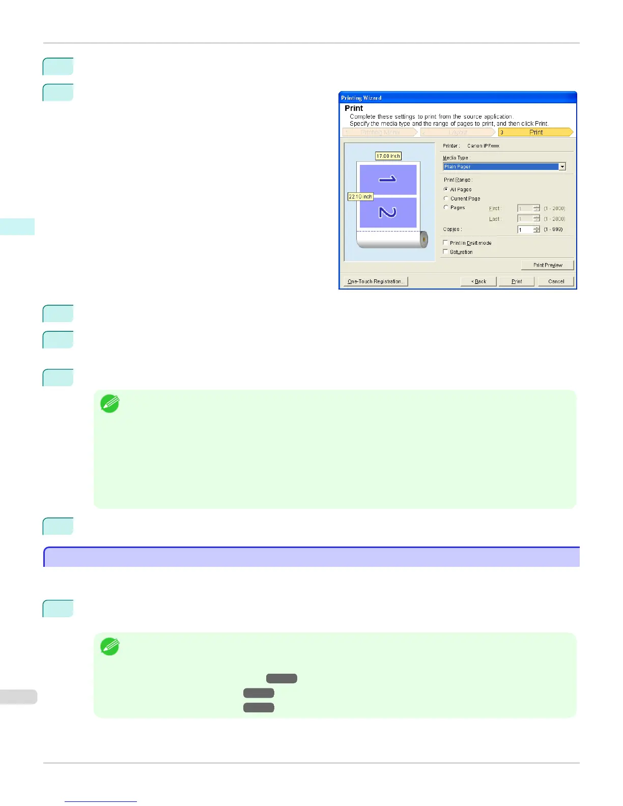 Set up to the Print screen from Print Matching Roll Width, Borderless Printing or Multi-Page Printing of