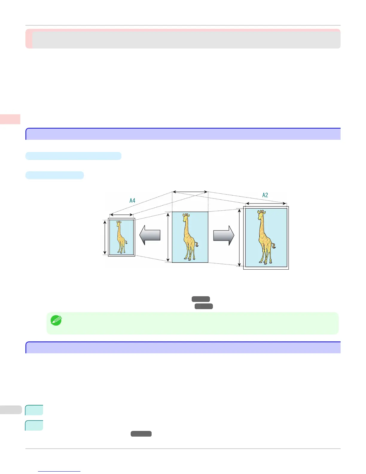 Printing enlargements or reductions