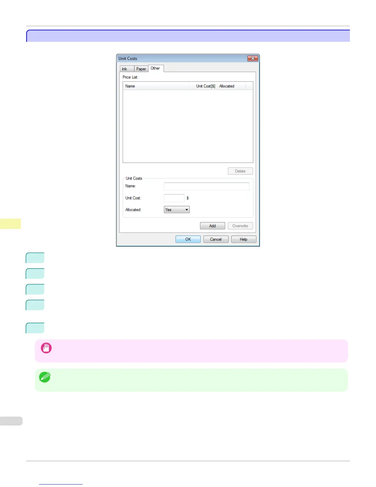 Setting the Unit Cost for Items Other Than Ink and Paper