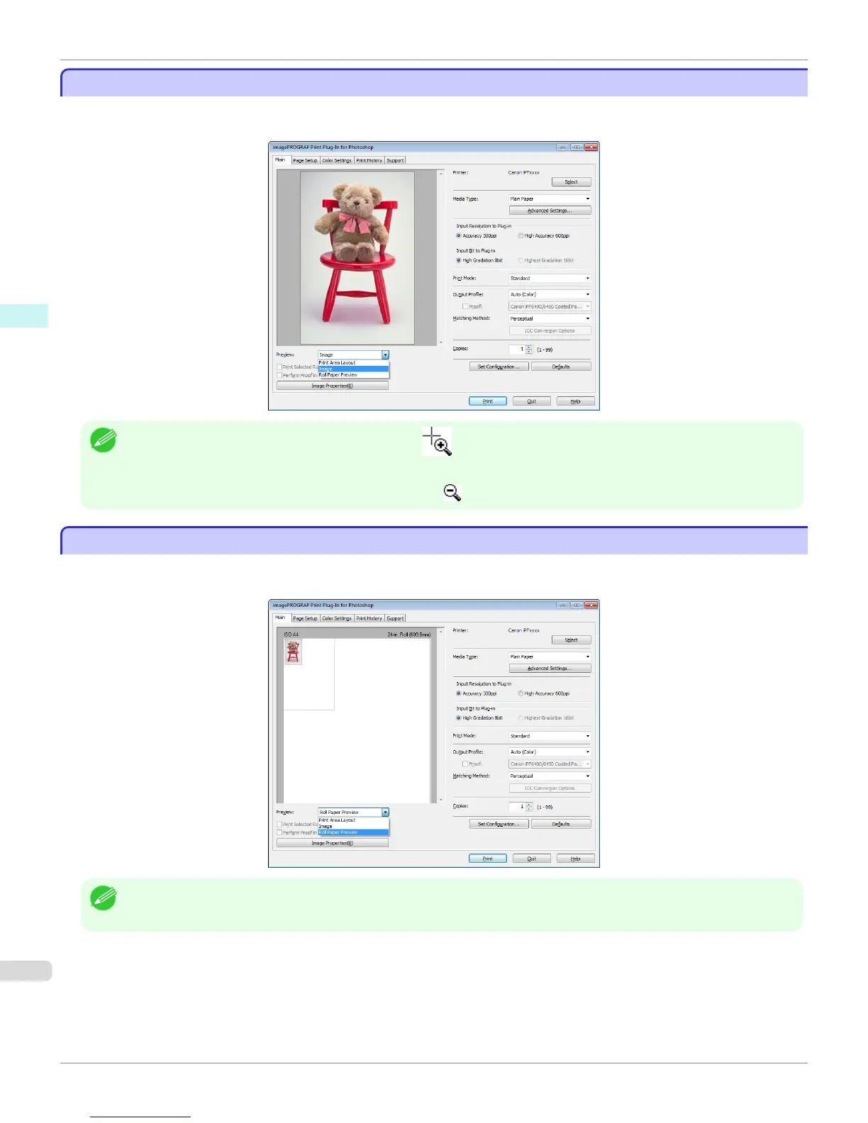 • To select Roll Paper Preview in Preview, select Roll Paper in Paper Source.