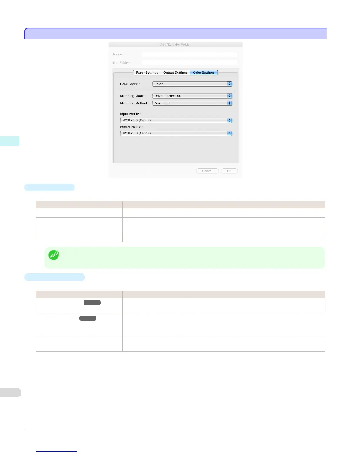 Driver Matching Mode ➔ P.429 Enables printing of optimal color tones using a driver specific color profile. You should normally