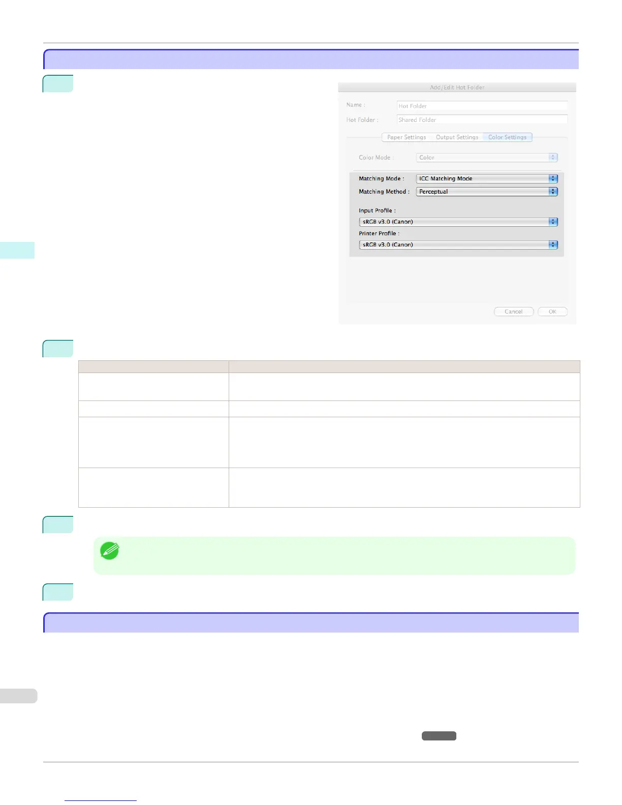 • To match the color on the printing, select the input profile for Color imageRUNNER Enlargement Copy of the Color