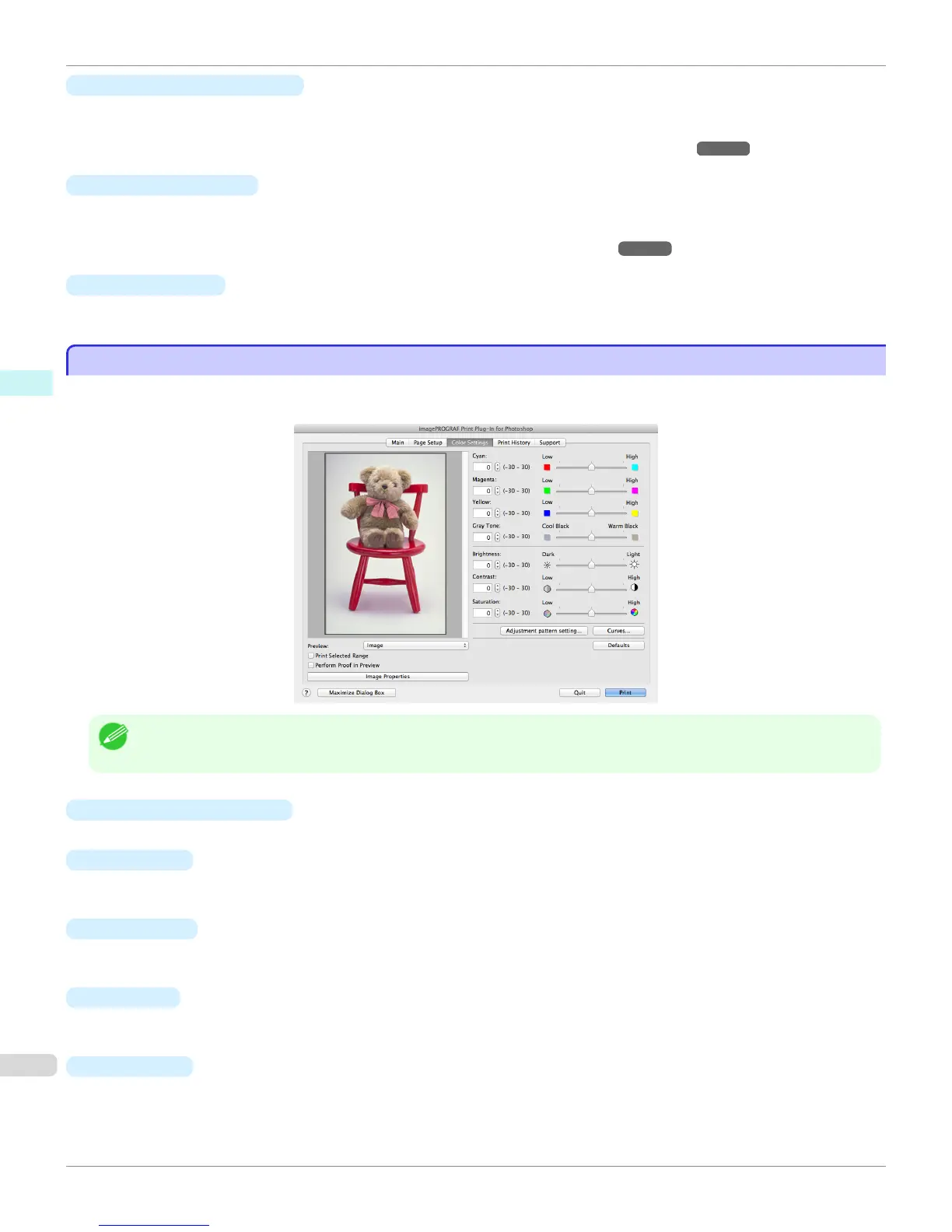 Cyan / Magenta / Yellow, Gray Tone, Brightness, Contrast, and Saturation