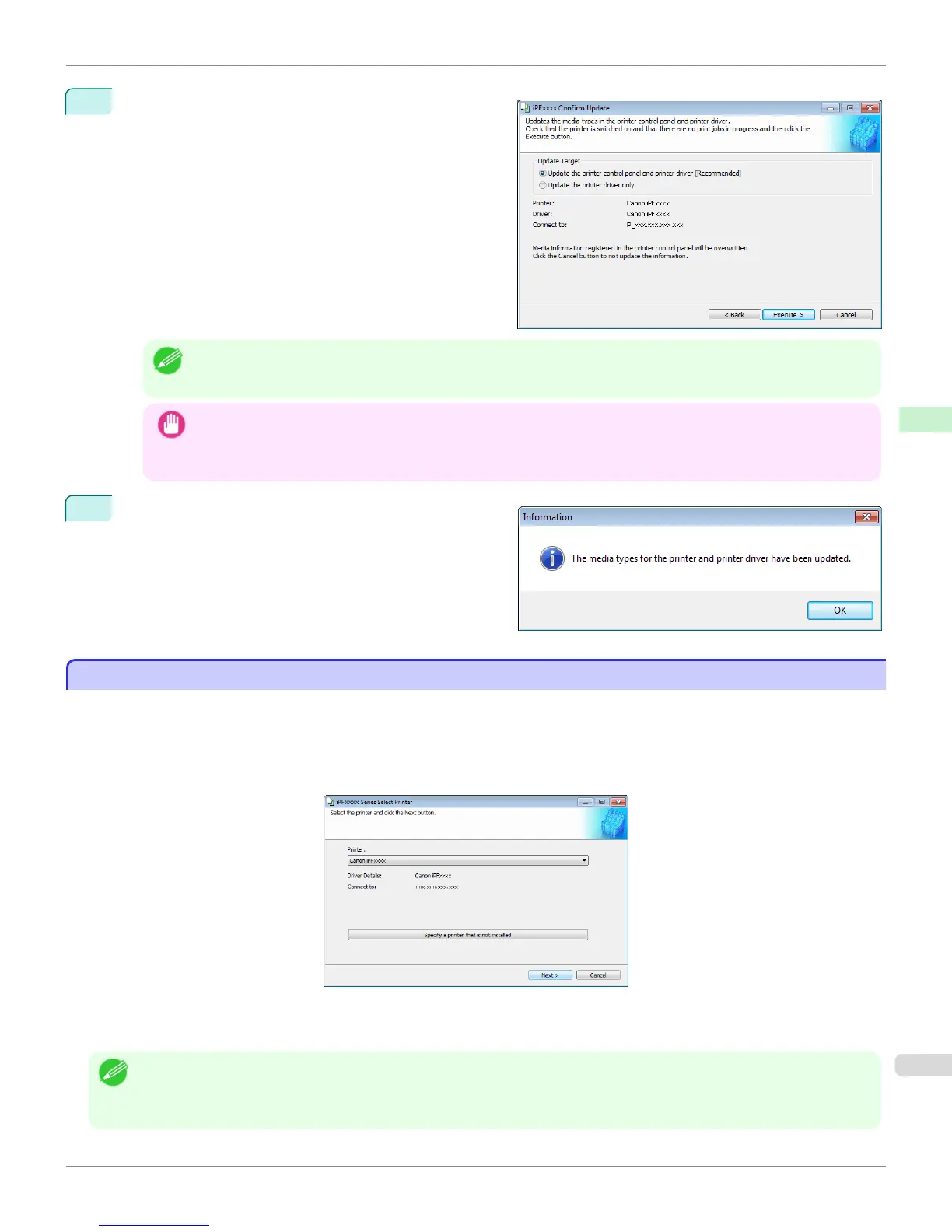 • You should normally select Update the printer control panel and printer driver.