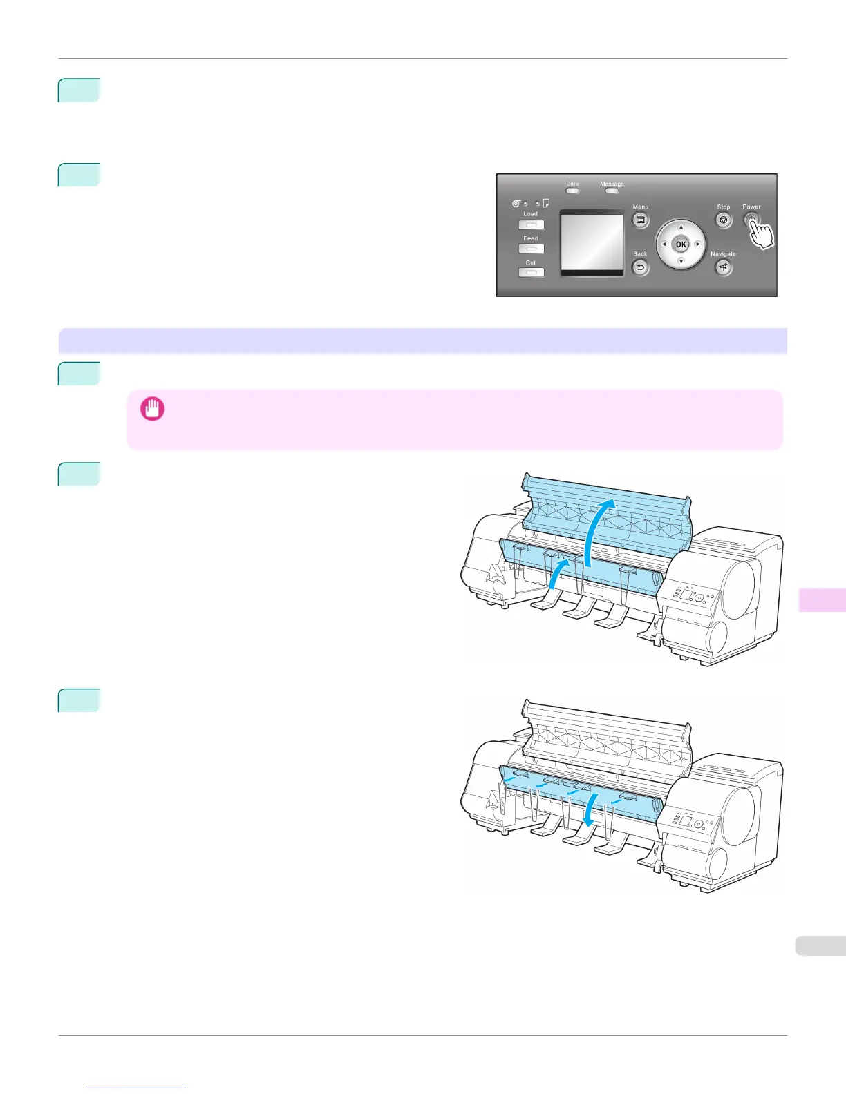 that state. If you accidentally unplug the printer, plug it in again, reinstall the ink tanks, and follow this procedure