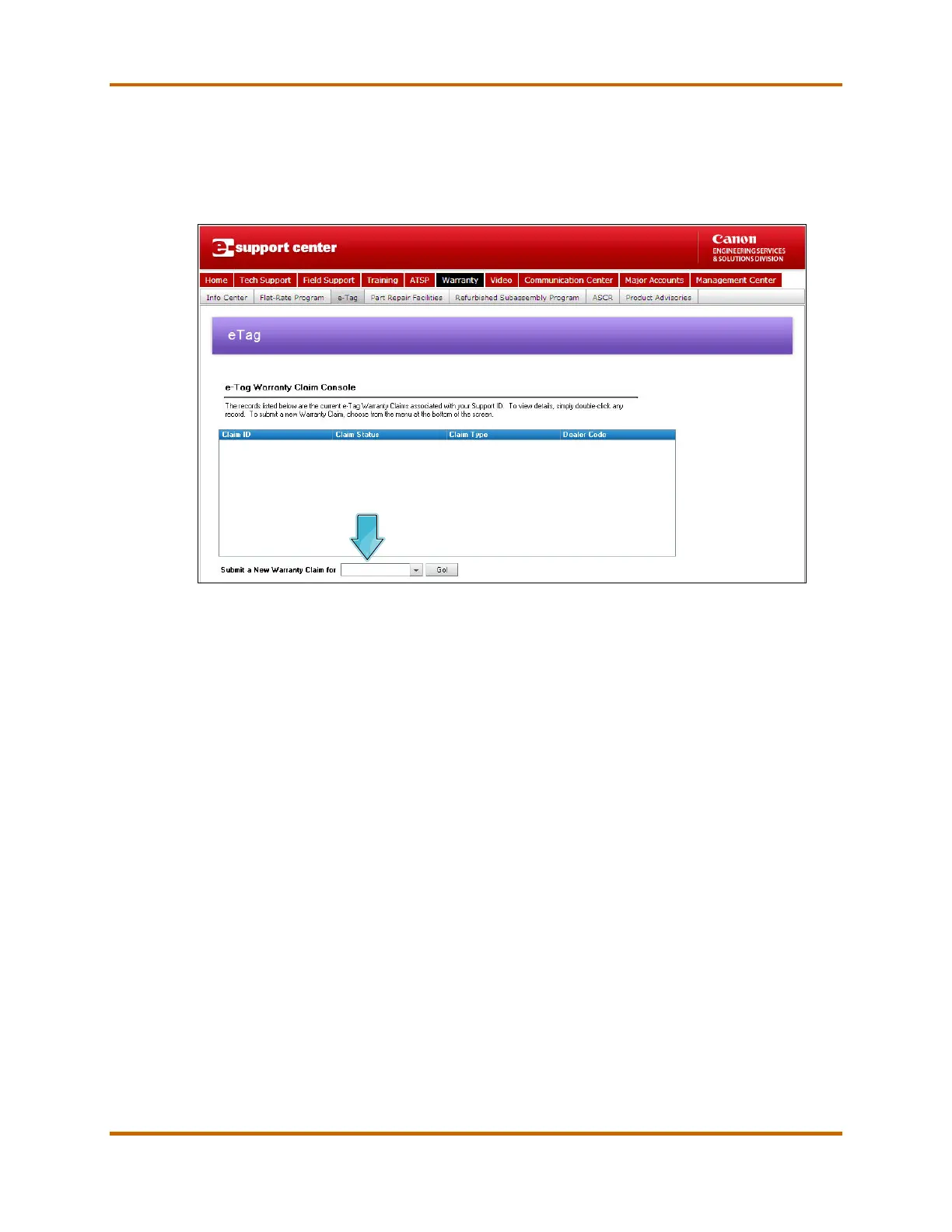 Figure 8 - e-Support e-Tag Claim Console