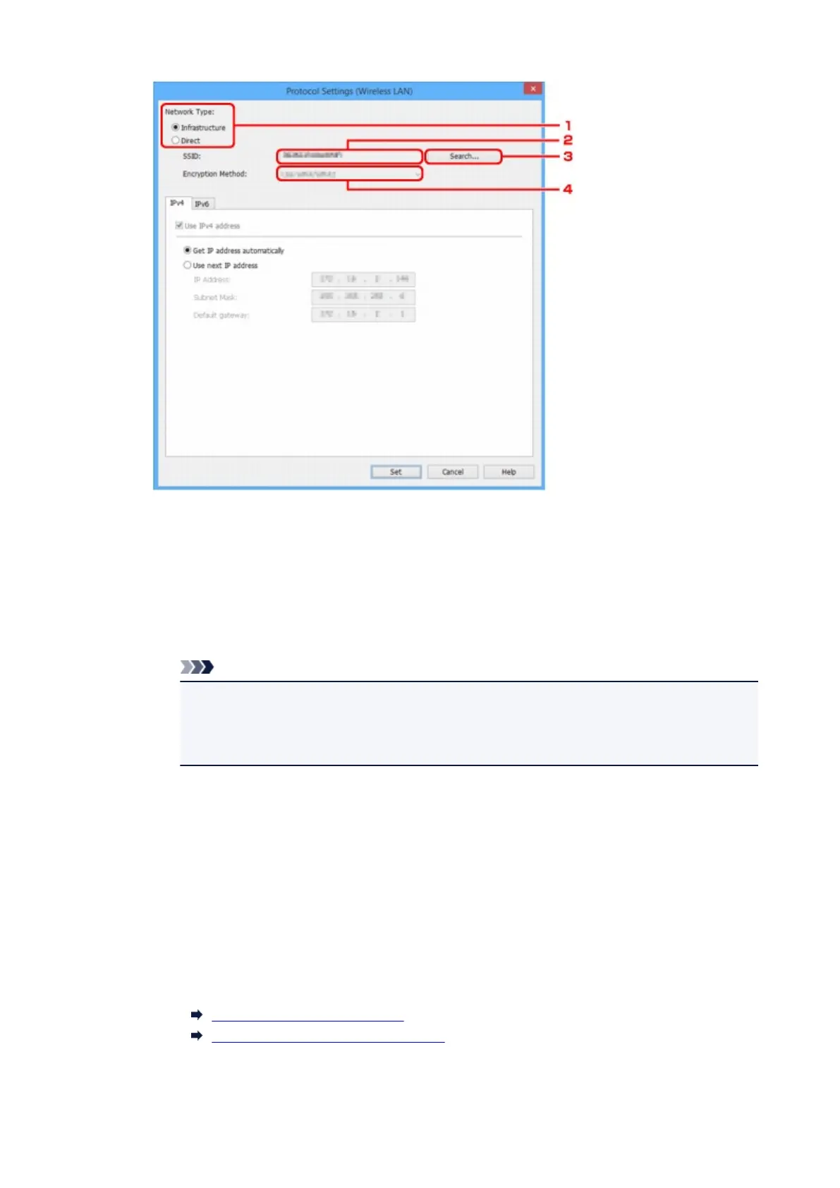 clicking Set displays the WPA/WPA2 or WEP setting screen for a wireless router.