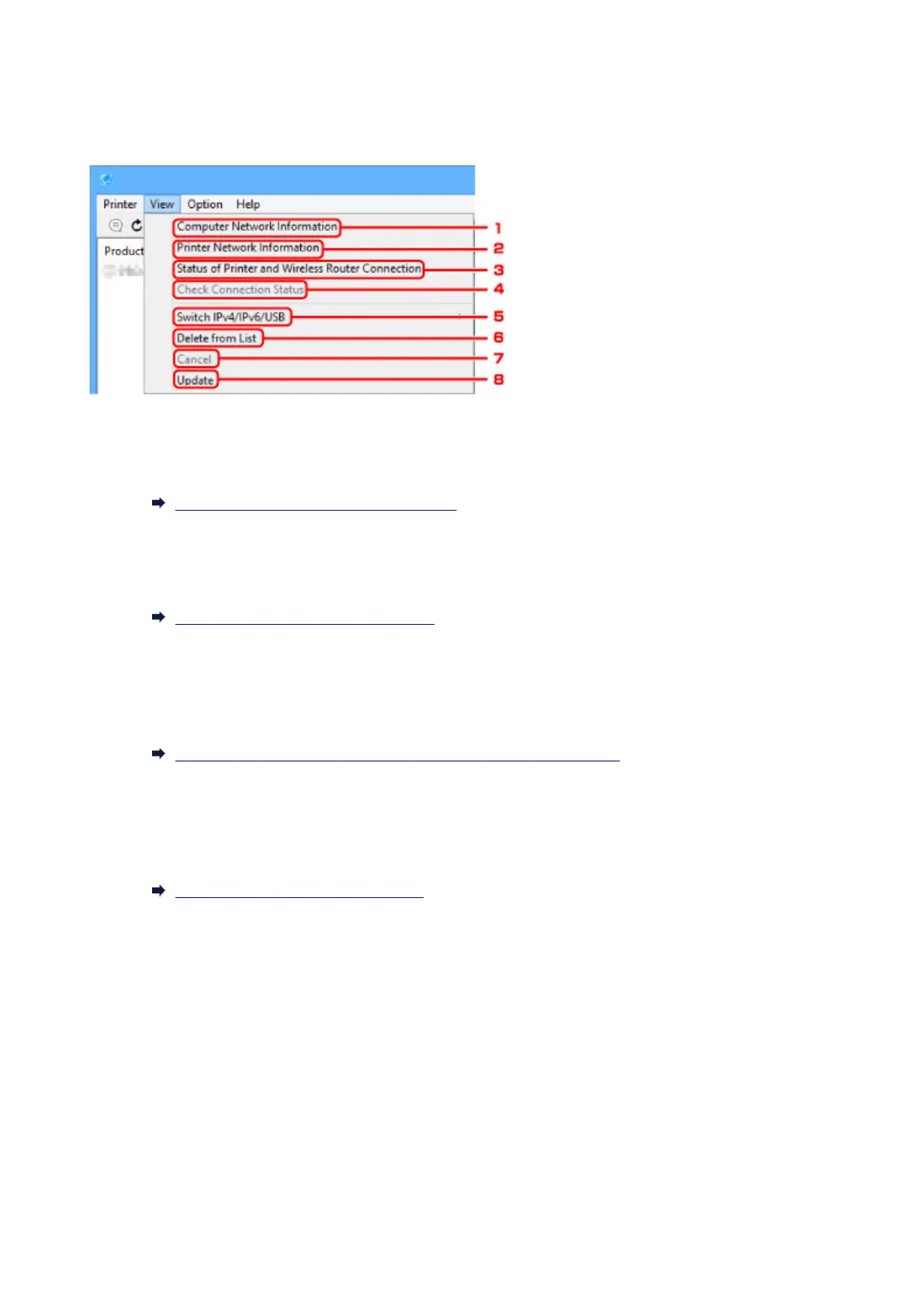 Switches the printer list between IPv4 printers and IPv6 printers. For some models, you can list USB