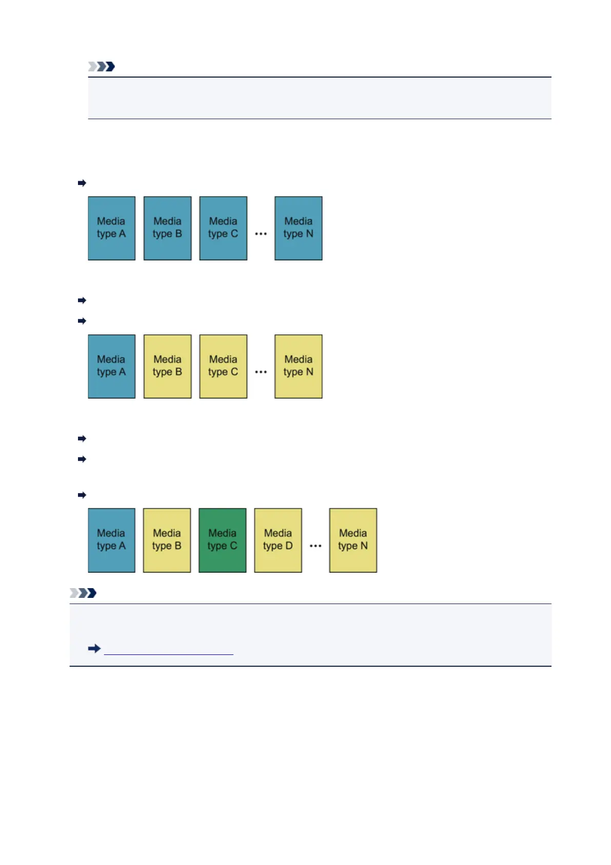 Media types B to N: The calibration adjustment values of media type B are applied.