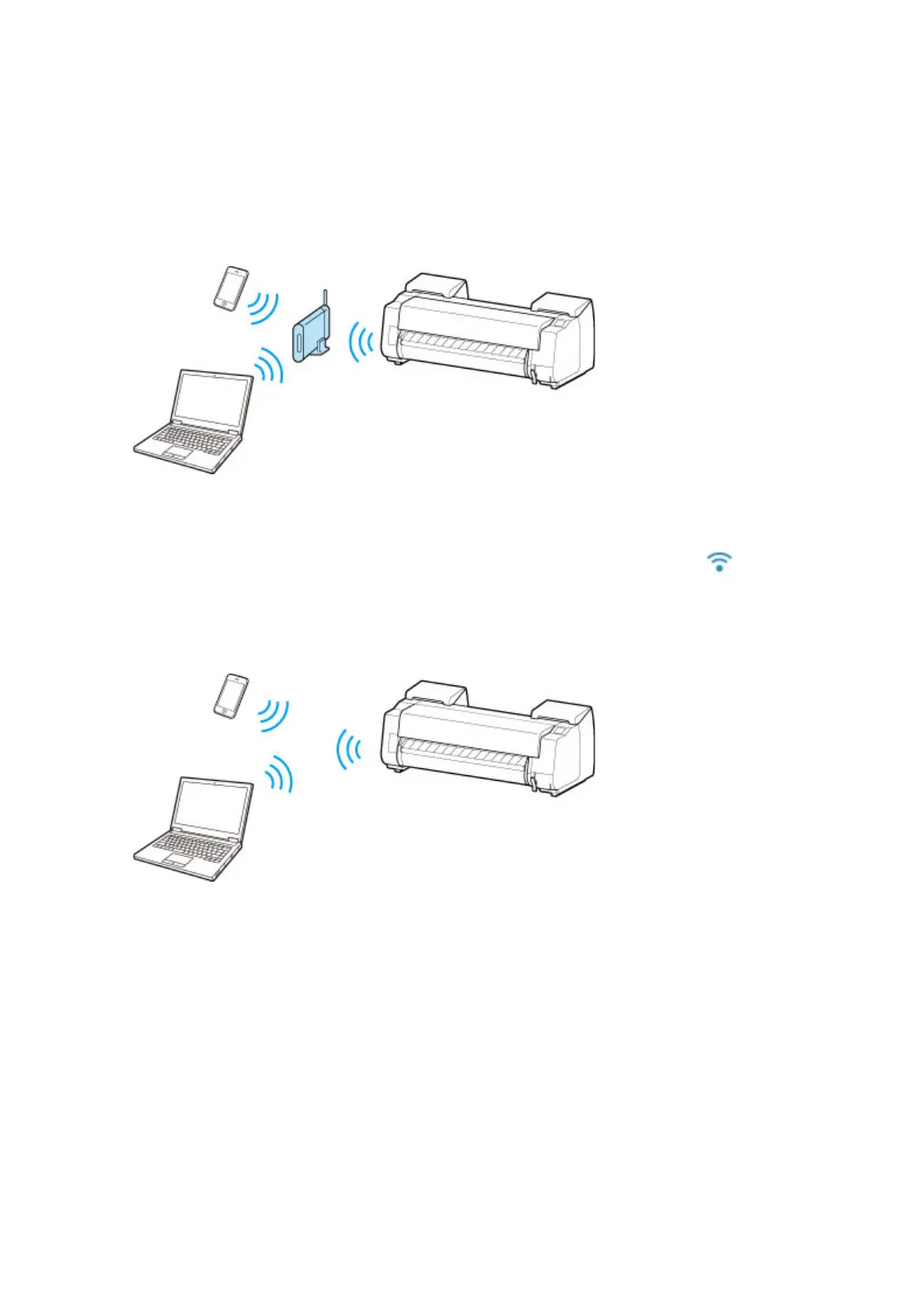 ◦ Connect the printer and a device using a wireless router.