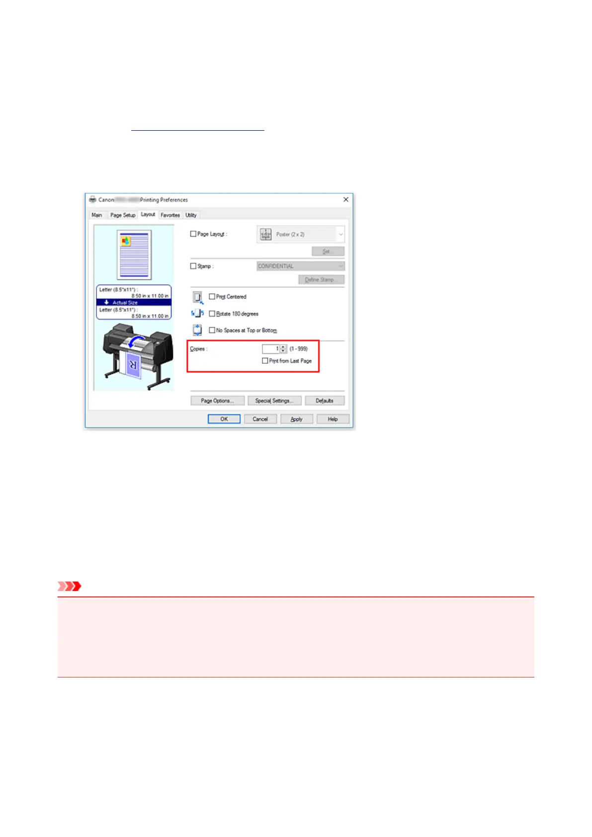 For Copies on the Layout tab, specify the number of copies to be printed.