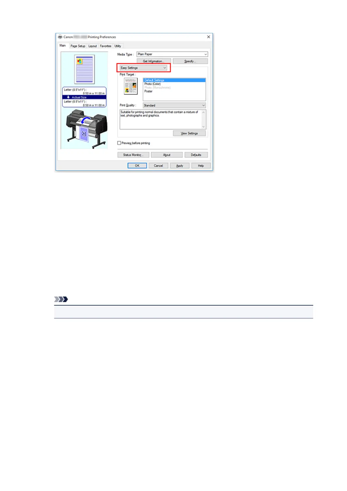 For Print Target, select the setting that matches the document.