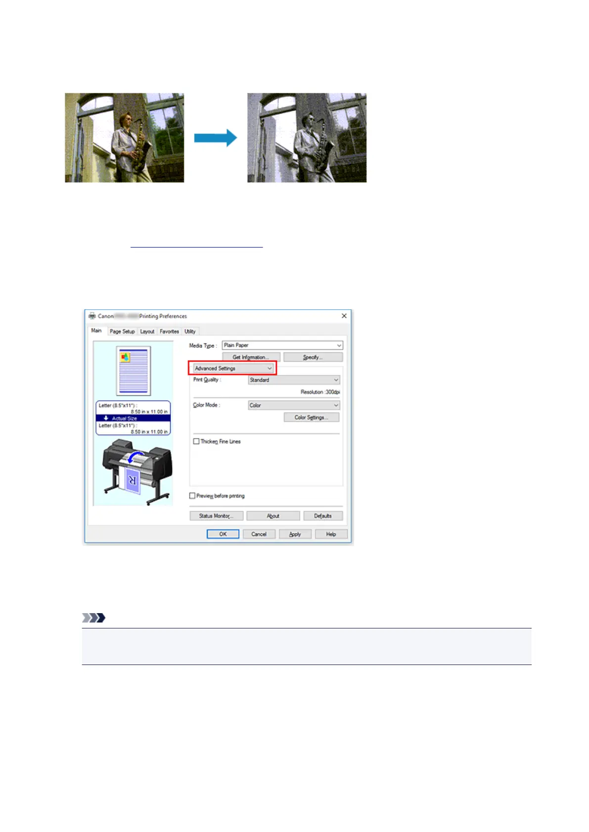 Depending on the media type selected for Media Type on the Main tab, either Monochrome or