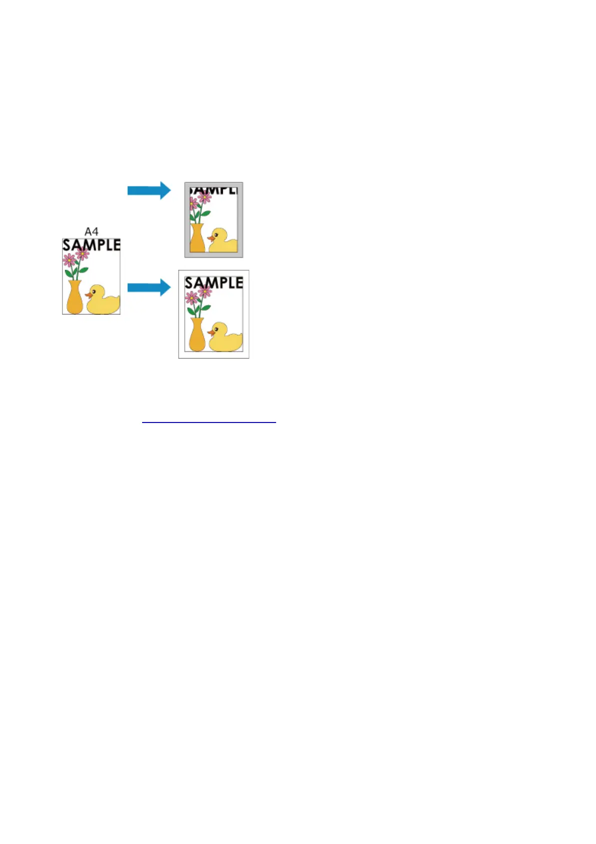 A printout that has the same area as the document can be obtained by trimming the outer margins after